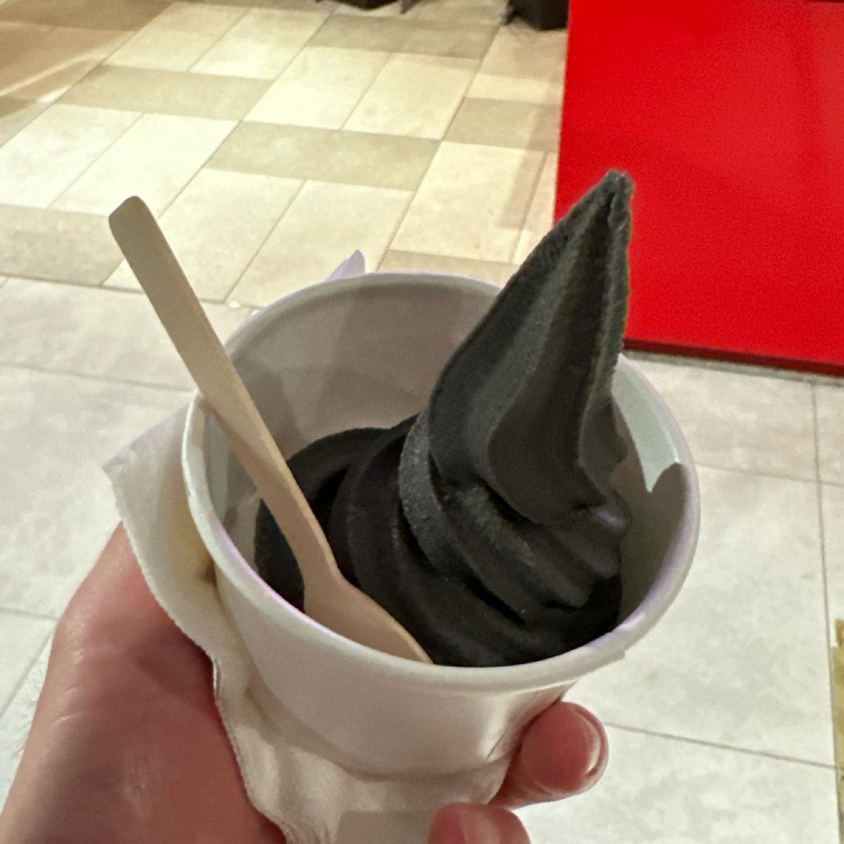 黒ごまの豊かな風味が、アイスクリームを滑らかでひんやりとさせます。黒ごまとアイスクリームのクリーミーな味わいが混ざり合って、全体的に甘めだけどベタベタしない味わいになっています!