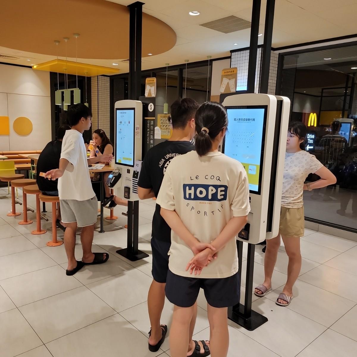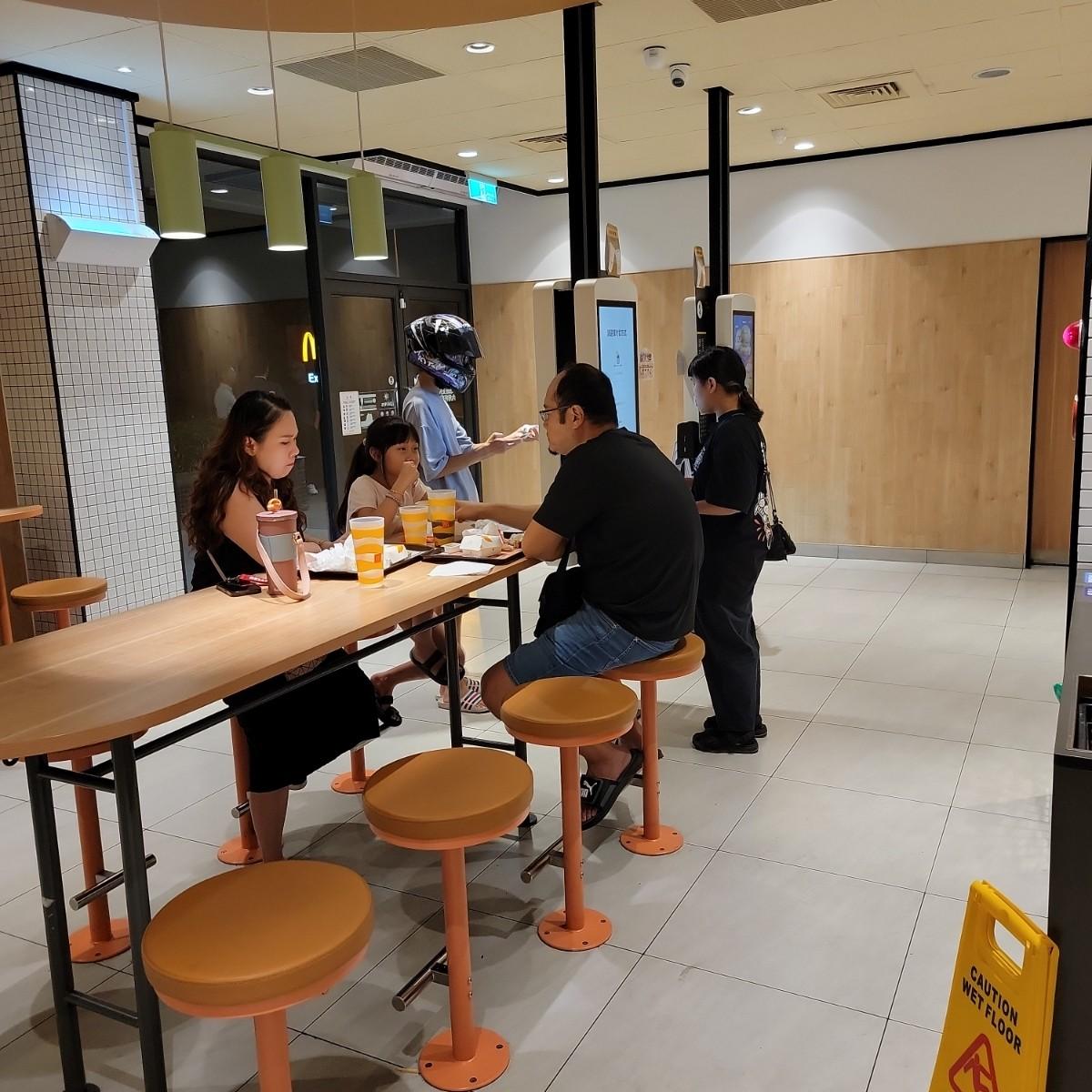 このマクドナルドは今年か去年に改装され、一階の座席数が減り、4台のセルフオーダー機が増えました。外のドライブスルー用の駐車場には約7台の車が停められます。