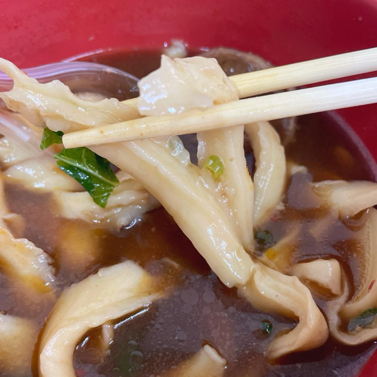刀削麺は太くてもちもちでした。麺が不均一で短いため食べるのに時間はかかりますが、食べ応えがあります。