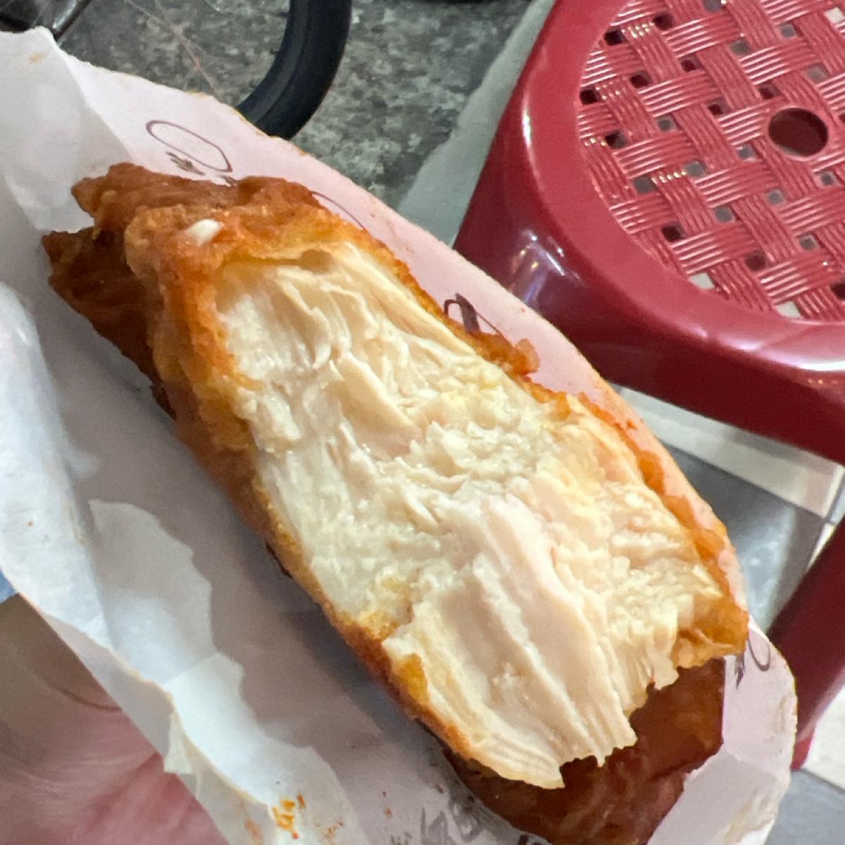 チキンステーキは外はカリカリ、中は柔らかくジューシーでとても美味しいです。チキンステーキの大きさは大きくないですが、厚みはかなりあります!写真からもわかるように、何度か食べても肉厚です!お肉が分厚いのに、とても美味しいです!チキンステーキを買うのがおすすめです!