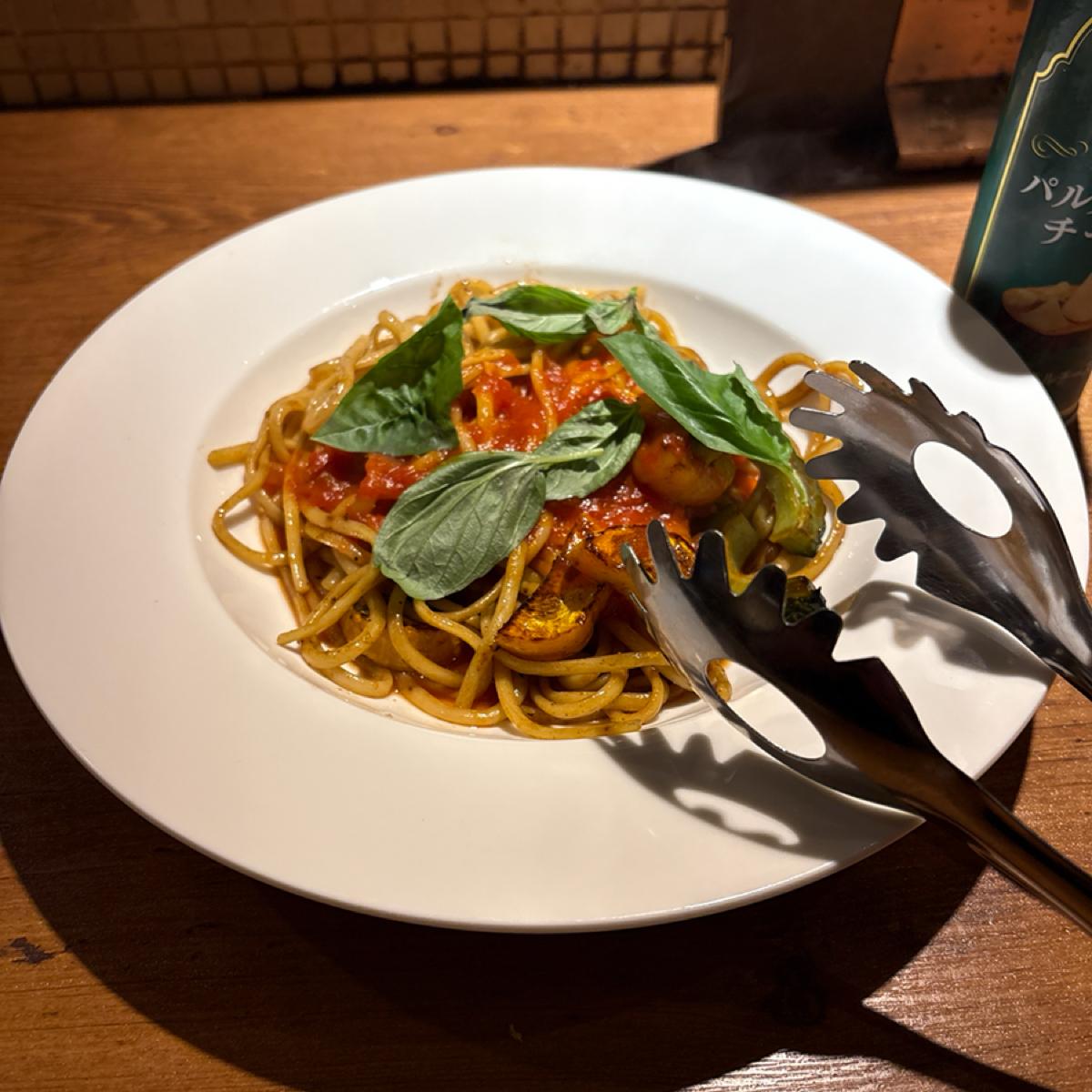 酸味のあるトマトソースが焼き目のあるもちもちの麺に絡んで美味しかったです🍝