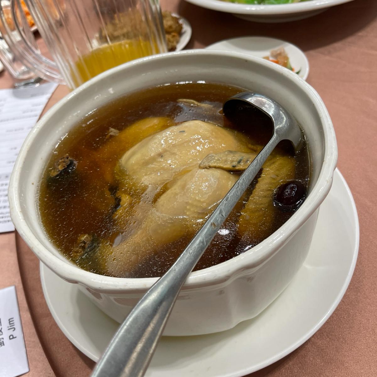 👉黄金冬虫夏草のスープ全鶏(鶏肉は非常に柔らかく、切ると崩れます。スープは本当に味わい深いです)