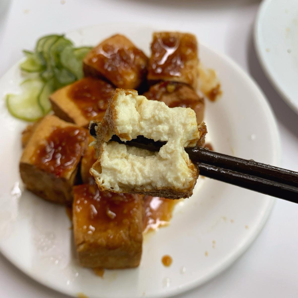 看板料理の一つと思われる揚げ豆腐は、おそらく卵豆腐で、確かにとても良いです。塩味の効いた美味しいタレがかかっていて、ぜひ試してみることをお勧めします。