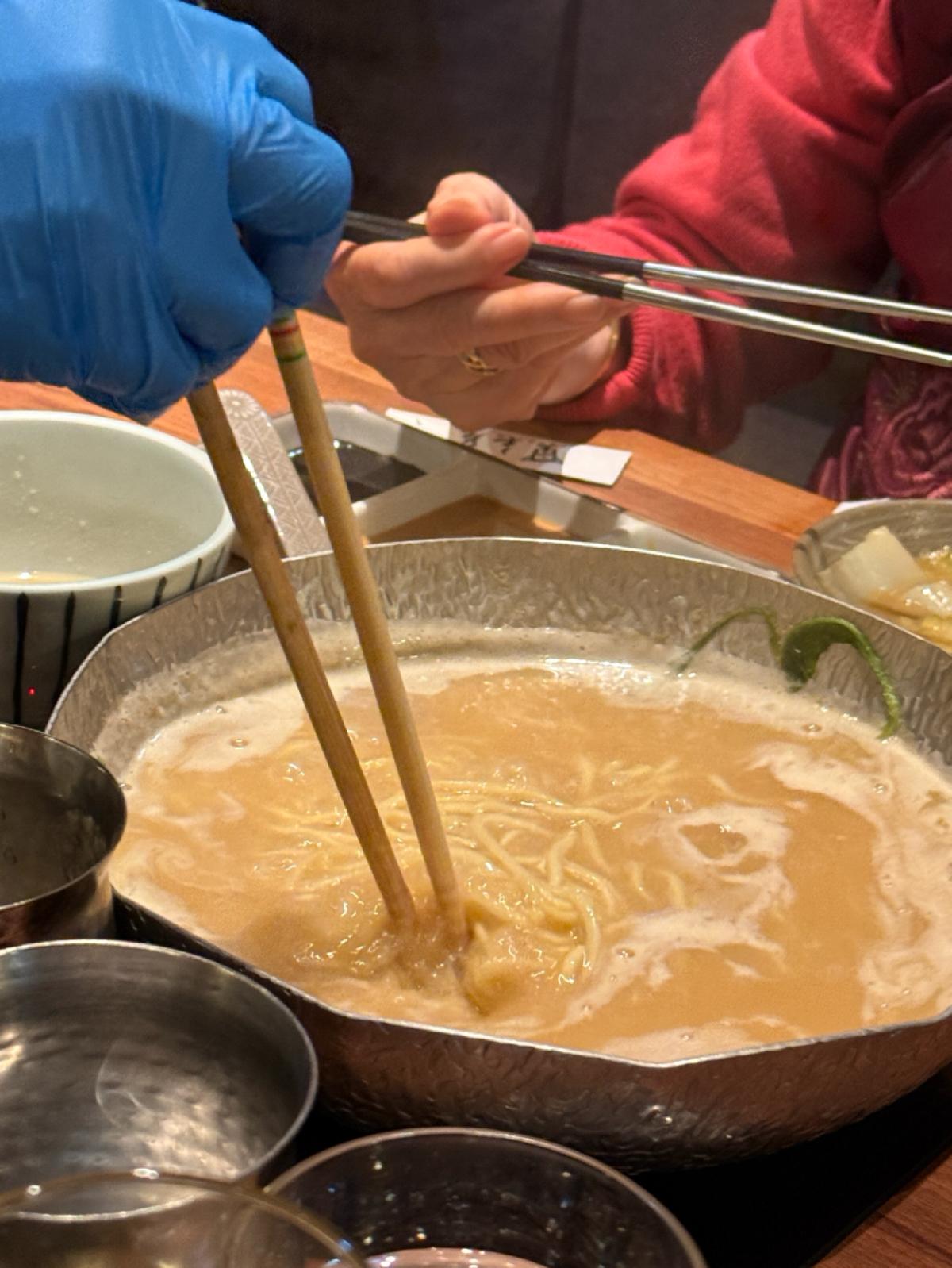 雪見鍋は豚骨スープに大根とろろでスープのさっぱり感を引き立てています。鶏白湯スープと比べると、雪見鍋のさっぱりした口当たりが気に入りました。食べ終わった後もさほど重く感じません。