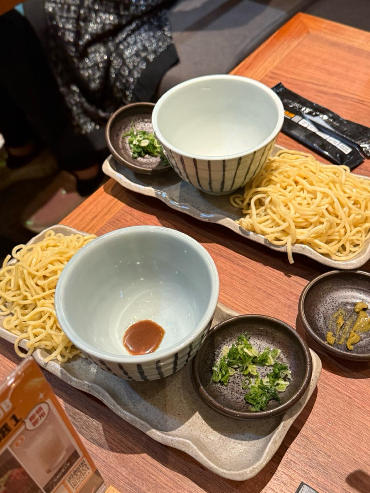 「強拌麺」とはラーメンに似た麺で、私たちが火鍋を煮た後、店側が残った火鍋のスープを使って強棒麺を茹で上げ、さっと取り出し火鍋の鶏白湯をかけて葱を散らします。食べると乾麺とラーメンのミックス版のような感じです。私個人としては、火鍋の後だと少しお腹が満たされすぎたため、あまり心に響かなかったですが、家族はとても気に入っていました。