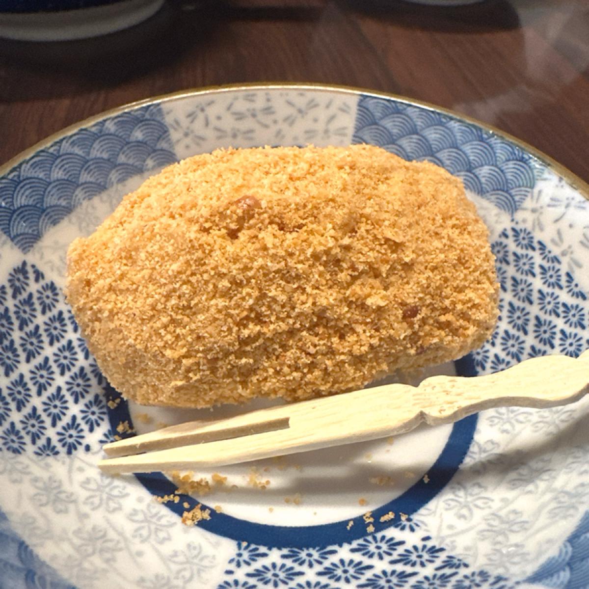 もち:熱いので注意が必要。食べるとミルクもちで、すぐに口の中で溶けて、外側はピーナッツ粉がまぶしてあり、シンプルな美しさがあります