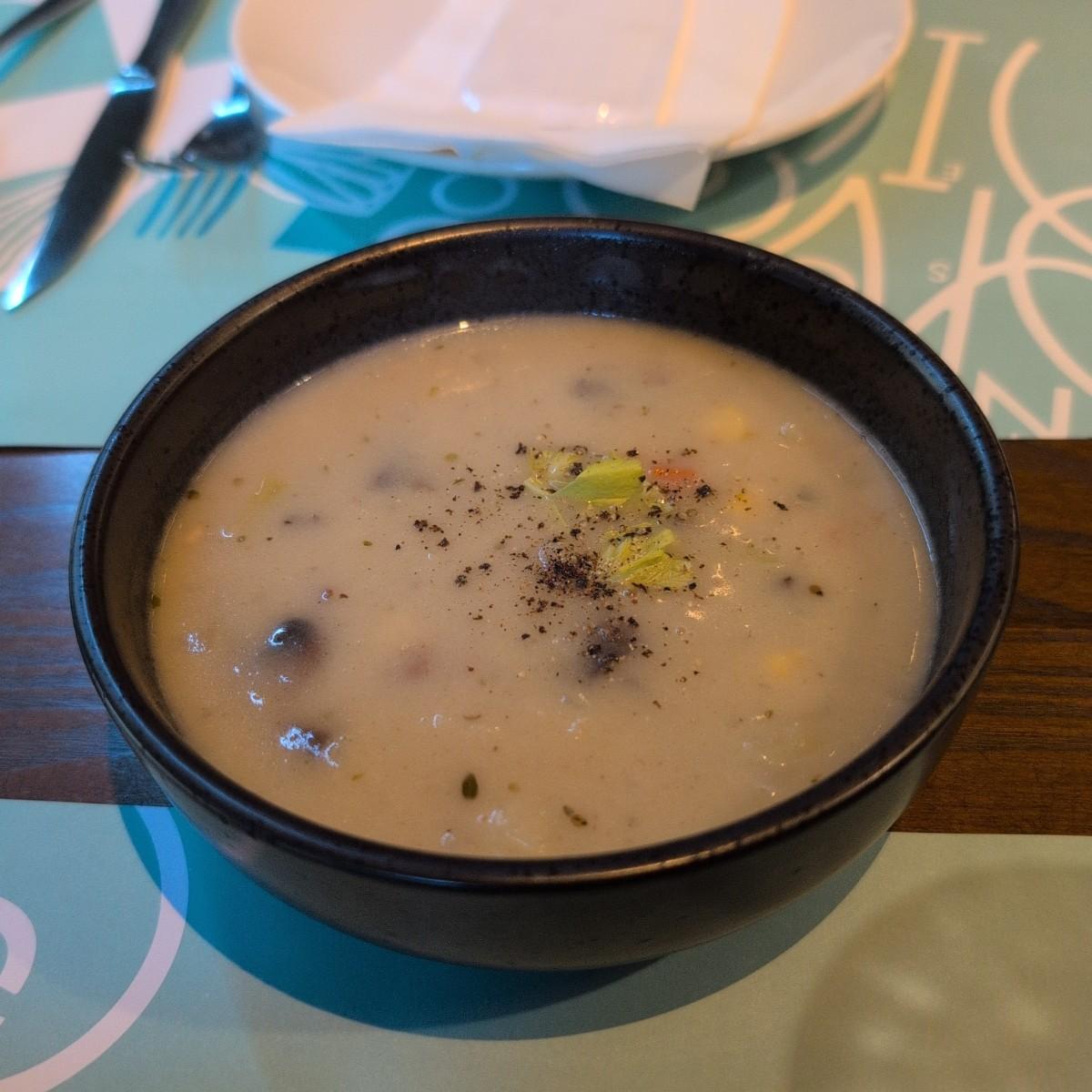 サービスや料理はとても良く、提供のスピードも安定していて、急かされることも、長時間待たされることもありませんでした。今回面白かったのは、アサリのクラムチャウダーを飲んでいるときに、小さな丸い異物を噛んでしまったことです。見た目は小さな真珠のようでした。後にレストランがシェフに確認したところ、それは本当に真珠だと確認されました。この小さなハプニングのおかげで、私たちのスープは無料になりました~~~