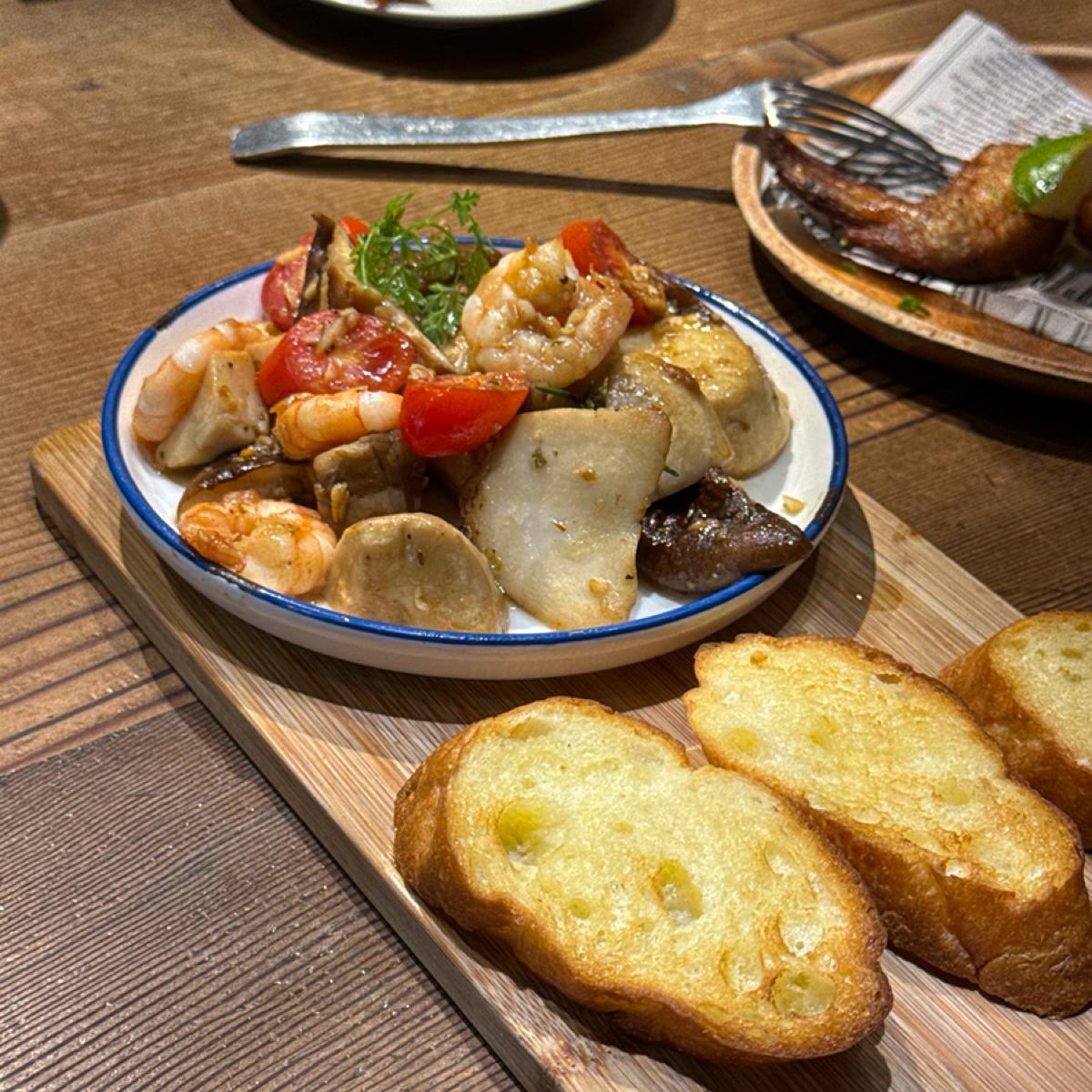 前菜のシーフードを炒めたパンは悪くなかったですが、アヒージョ特有の味でした。