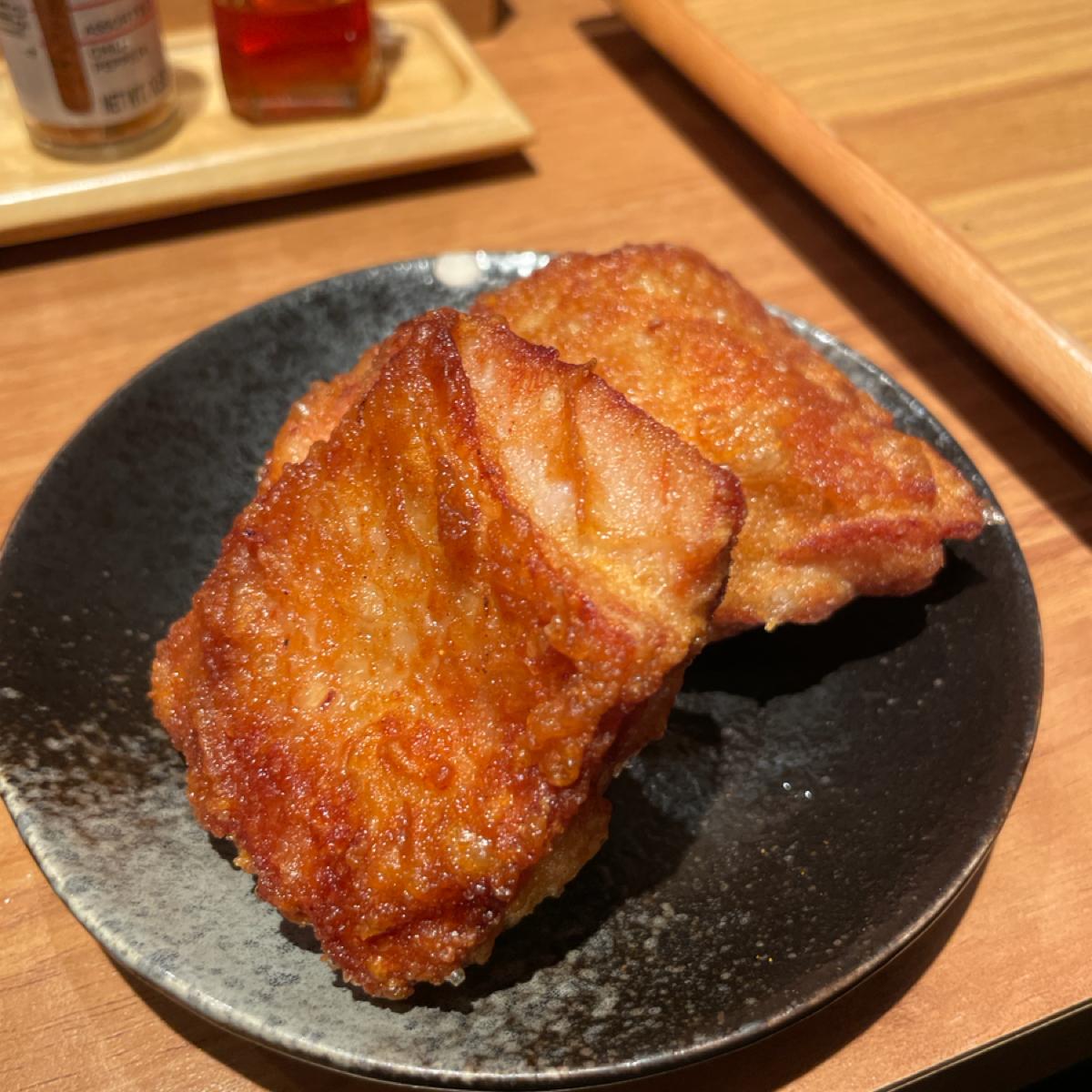 仕事帰りに同僚とラーメンを食べに行きましたが、幸い行列は少なく、2組ほど待って座ることができました。店内は狭いので、5人で両側に座りました。 あまりラーメンを食べないのでラーメンのことはあまり詳しくないのですが、鶏白湯ラーメンは想像以上の美味しさで驚きました〜〜深夜に一杯食べられるのは本当に幸せです!唐揚げも皮はパリパリ、肉は柔らかく、味付けも美味しいです!