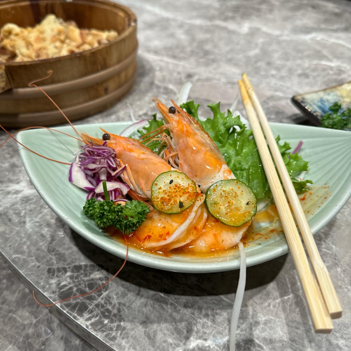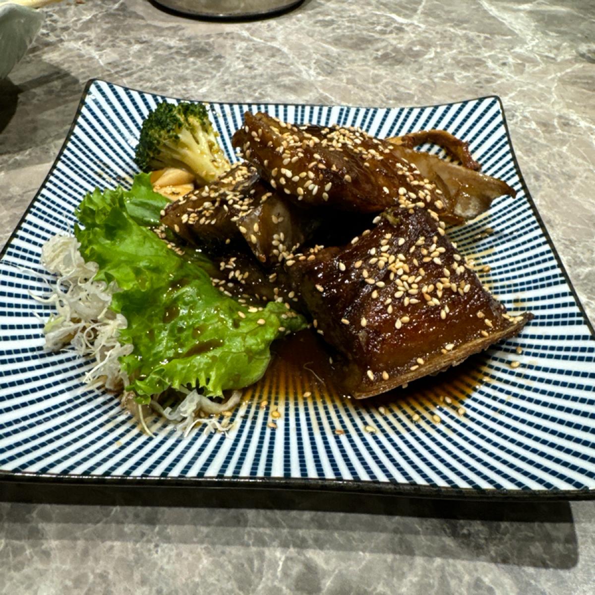 -黒鮪あご焼き 380-とても美味しいです、身は柔らかくて甘辛く、骨も少しかじれます -白エビのガーリック蒸し 5P/320-エビの質が良く、ガーリックの風味がとても良く、結婚披露宴でよく出てくる料理によく似ています。
