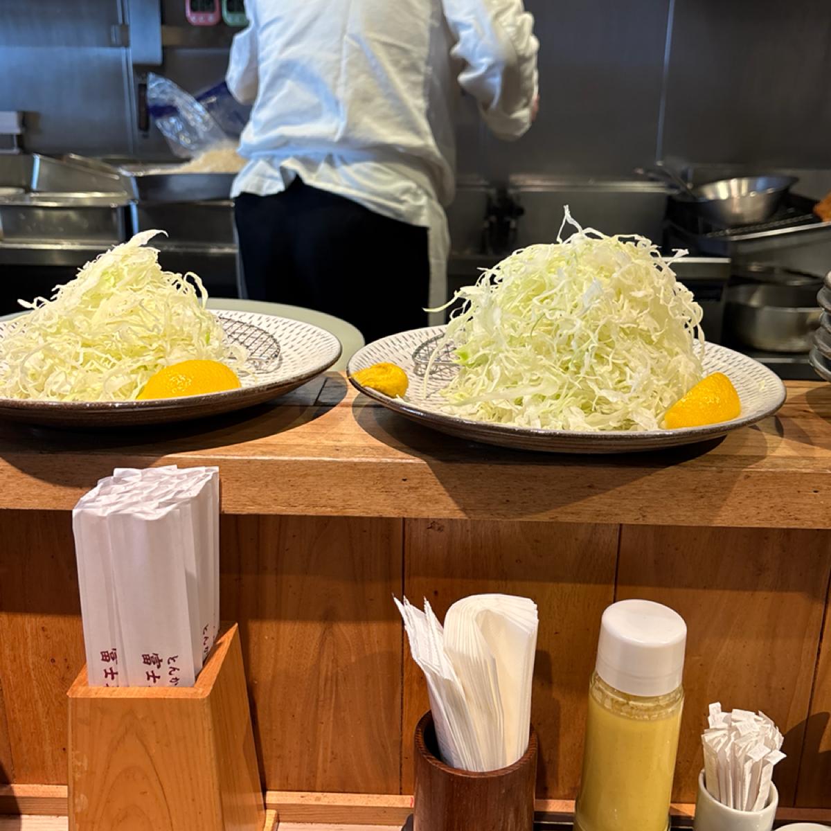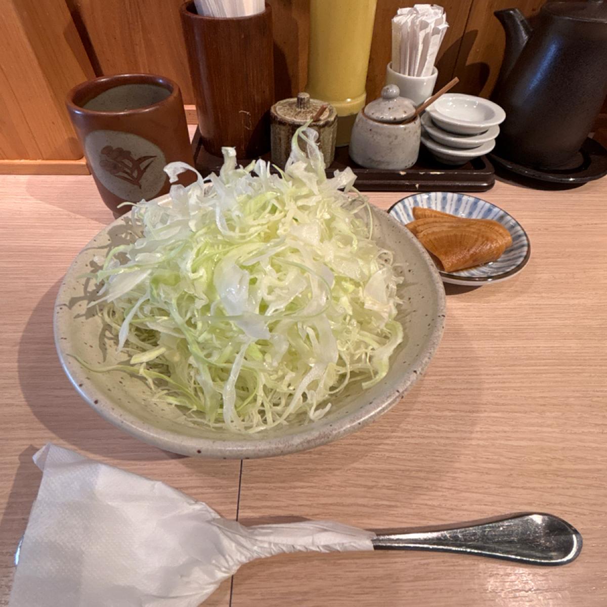 ランチタイムの価格は非常にお得で、ほとんどの人が豚カツ定食を注文していました。私はカレーライスのメニュー名「豚カツ店の豚カツカレー」に惹かれ、定食ではない場合キャベツの千切りは別添えで、再注文できるかは聞きませんでした。味噌汁もありません。