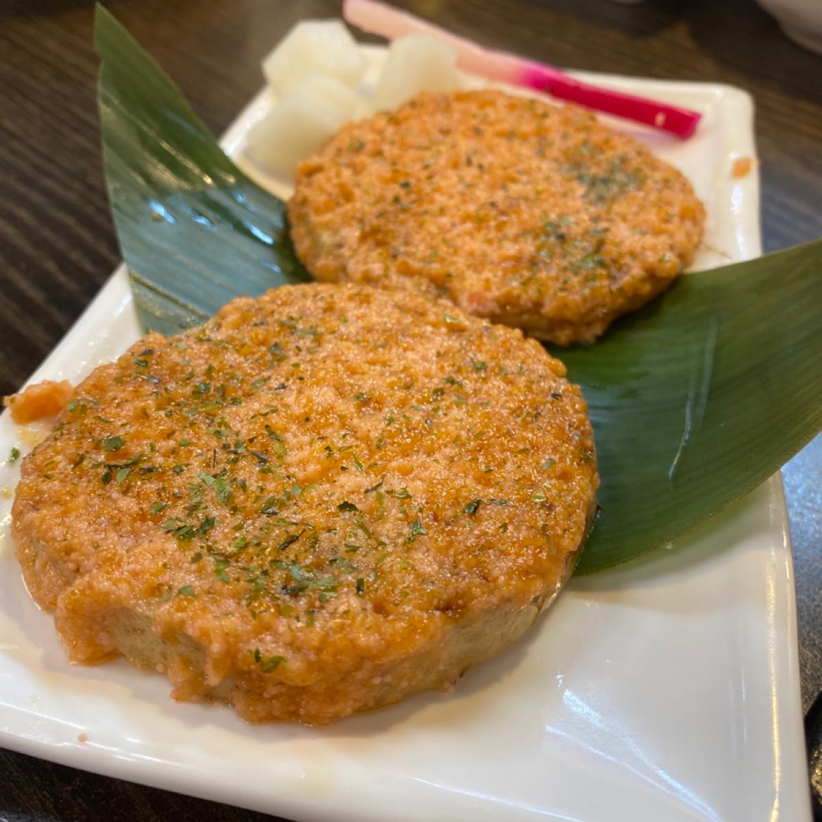 一番のおすすめは「芋虫寿司」です。 上は焼き鮭の明太子ソース、中は花寿司(キュウリと肉綿添え)です。目を輝かせてください😍