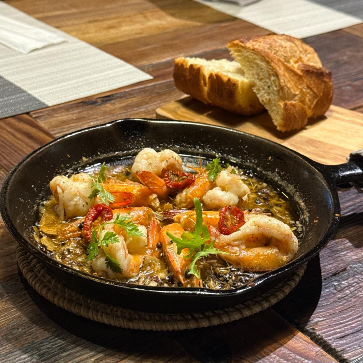 スパイスとガーリックの厚みが不足しており、海老の新鮮さと弾力も欠けていて、他のレストランで食べたバージョンと比較すると相対的に印象が薄い感じでした🧄