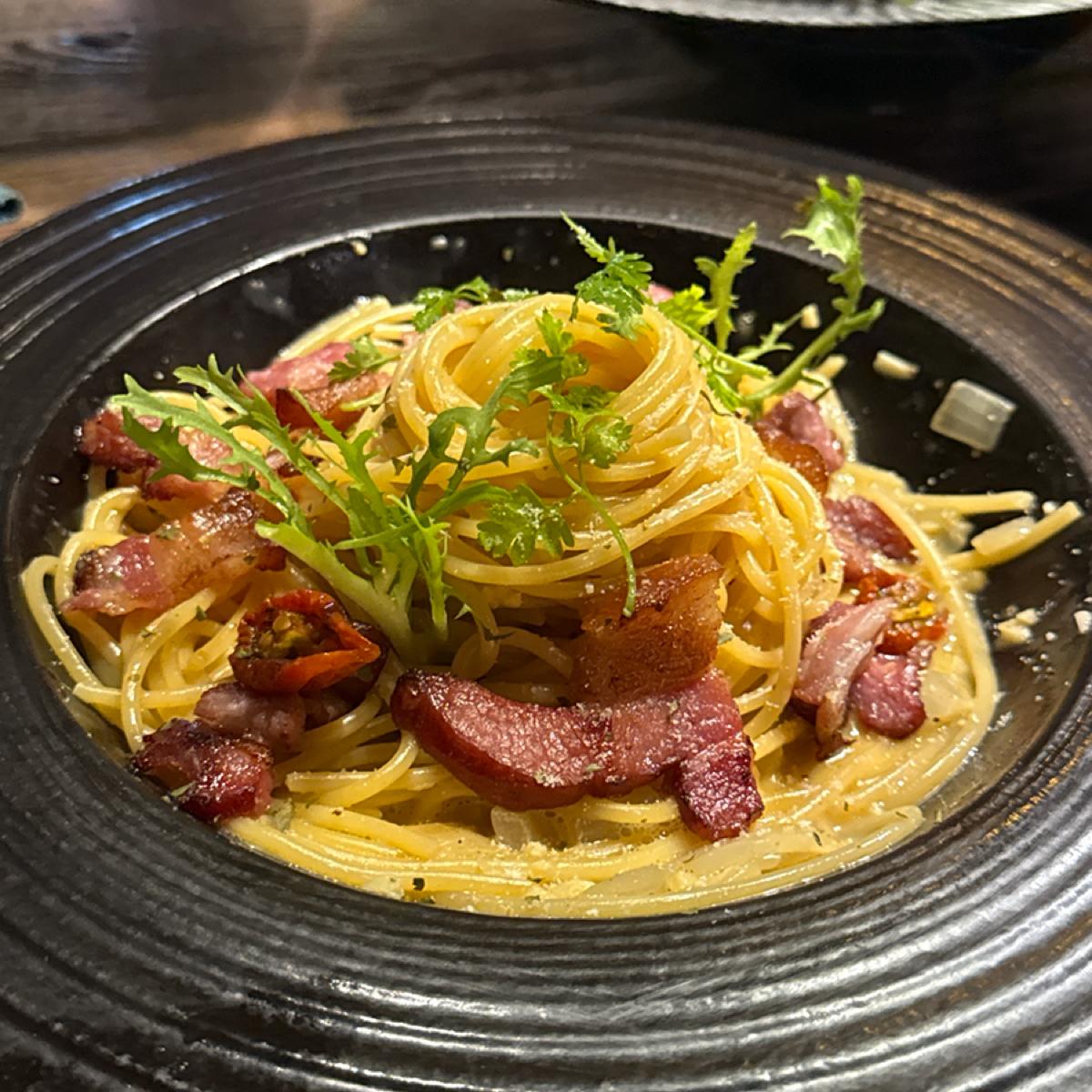 相対的に平凡で、味付けが淡泊すぎて、卵の香りとベーコンの塩味が十分に融合せず、濃厚さが欠けていました🍳