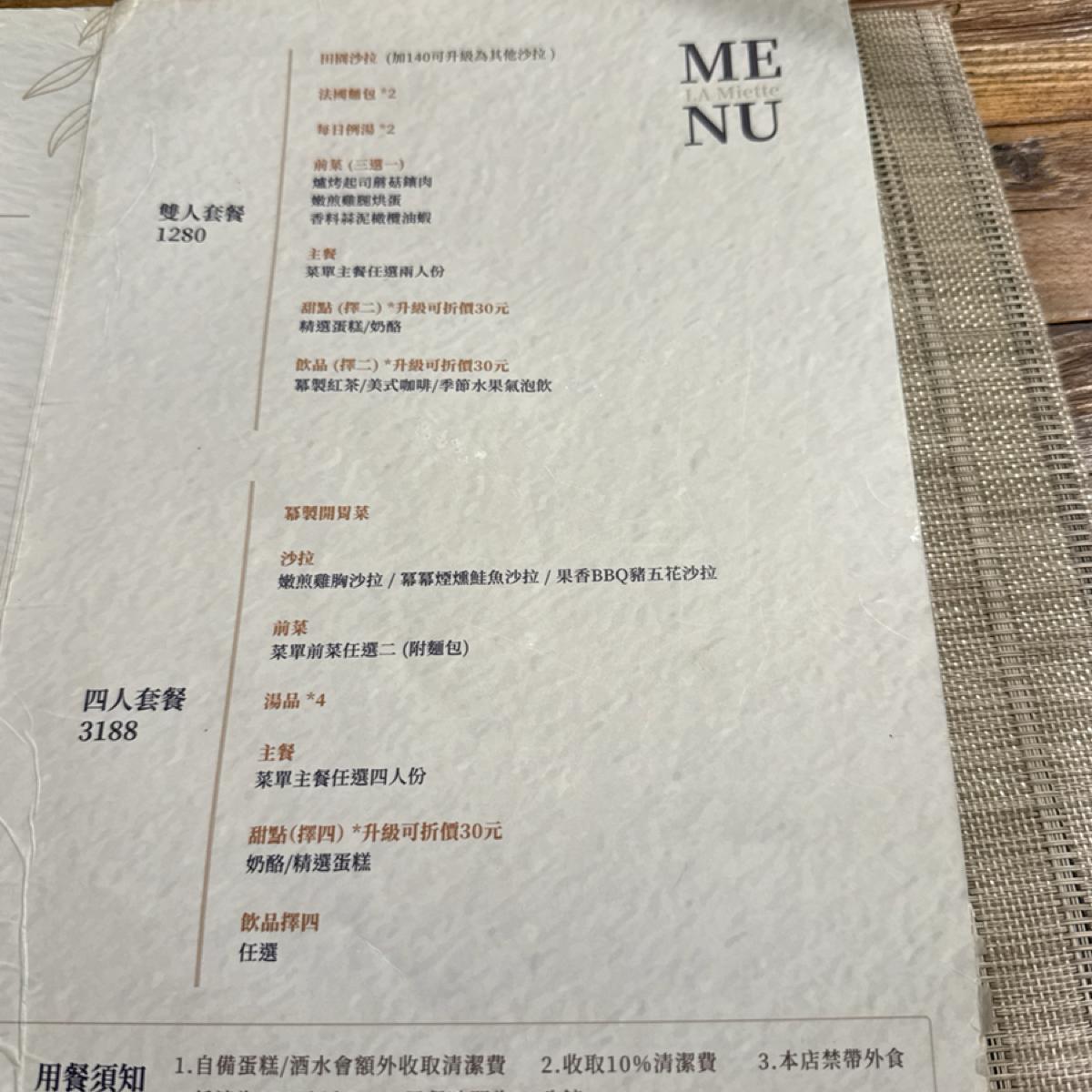経国路二段に位置するLa Mietteは、欧風料理とイタリアンパスタを主打にしており、全体的な環境はやや精緻で、価格も中偏高に設定されています。しかし、今回の食事体験は「良い点もあれば、落差も多い」といった二極化した感覚を呈しています。