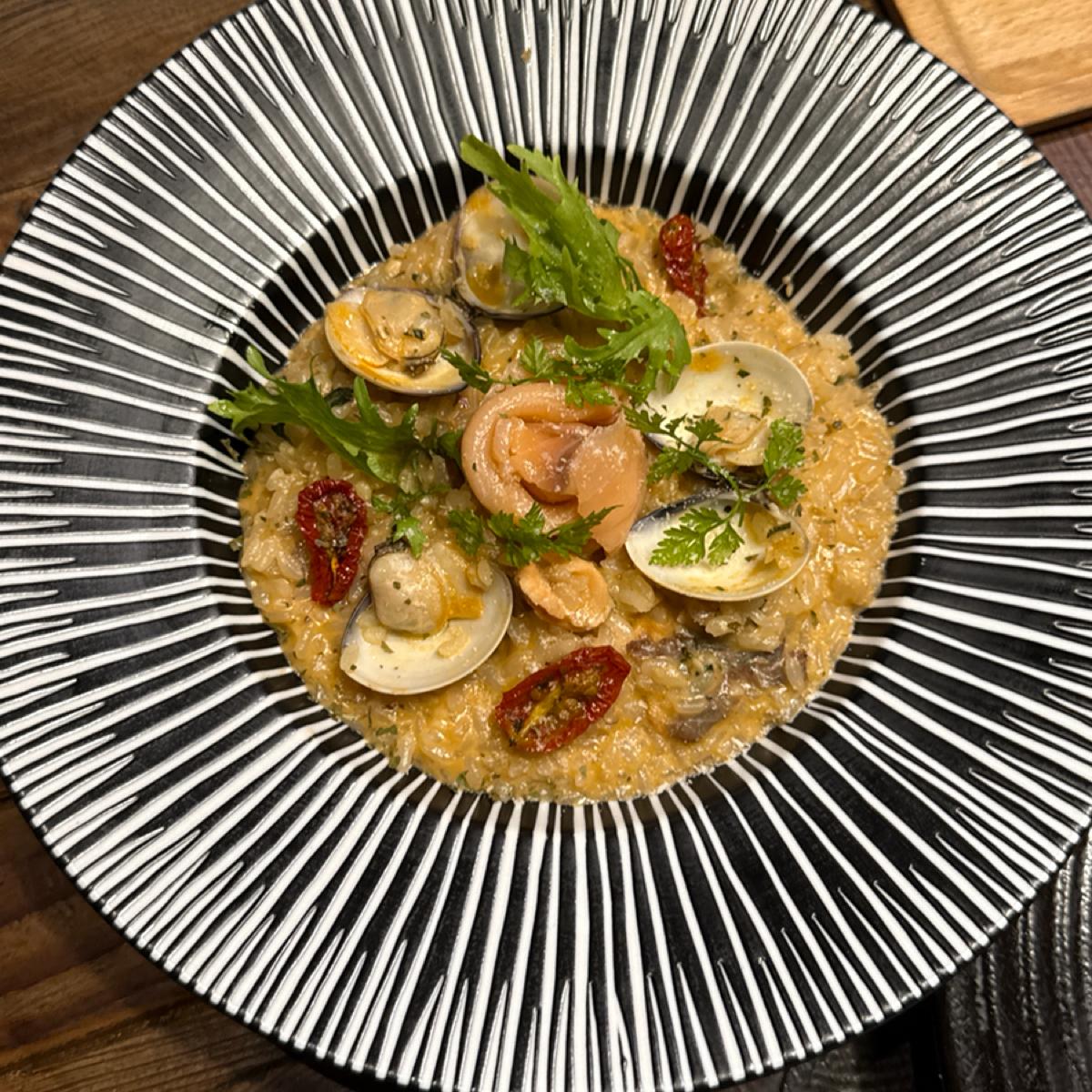 《スモークサーモンとアサリのリゾット》
