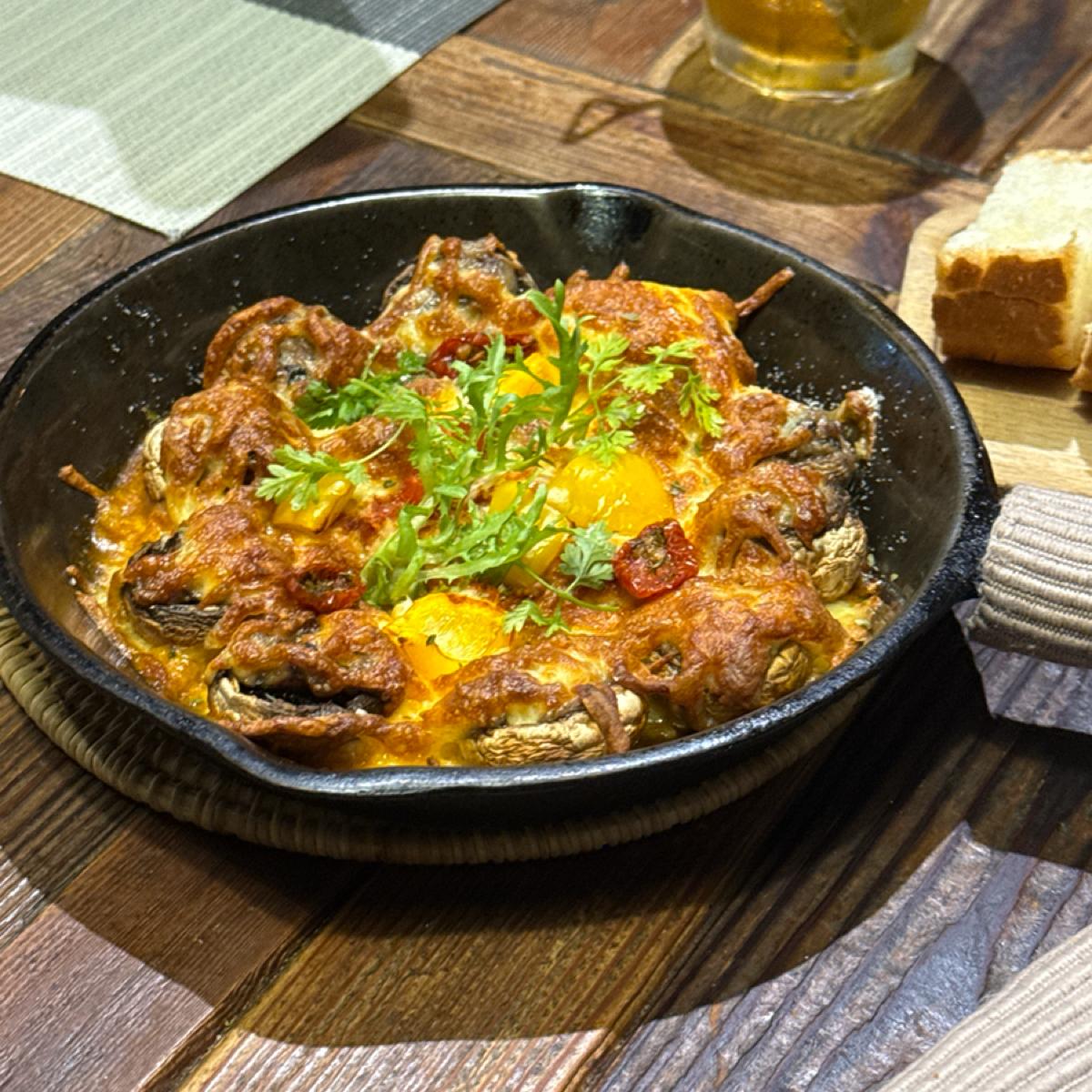《オーブン焼きチーズとマッシュルームの肉詰め》