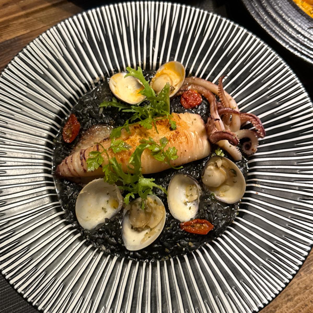 この日の最高の一品で、とても良かったです。真っ黒なイカ墨ソースが完全に米に染み込み、一口ごとに深い海の味わいが広がります。アサリの新鮮さも高く、全体の中のハイライトの一つになりました。