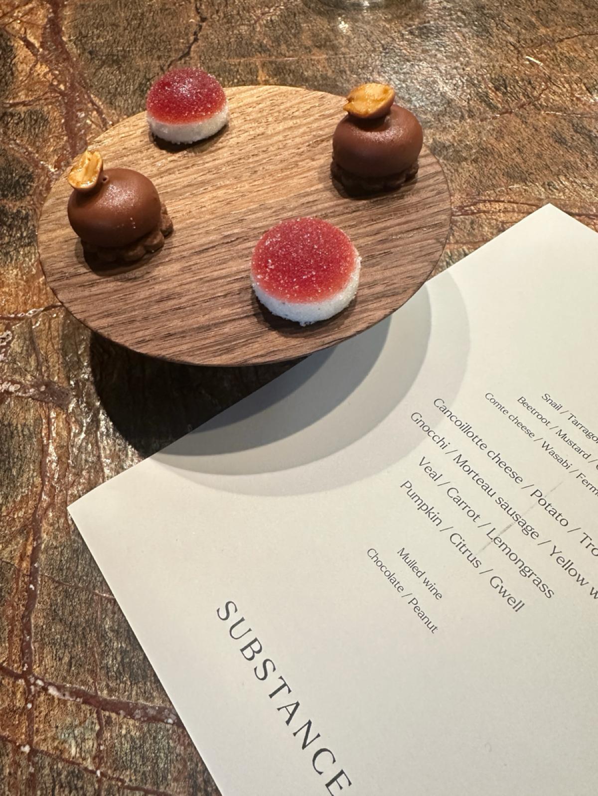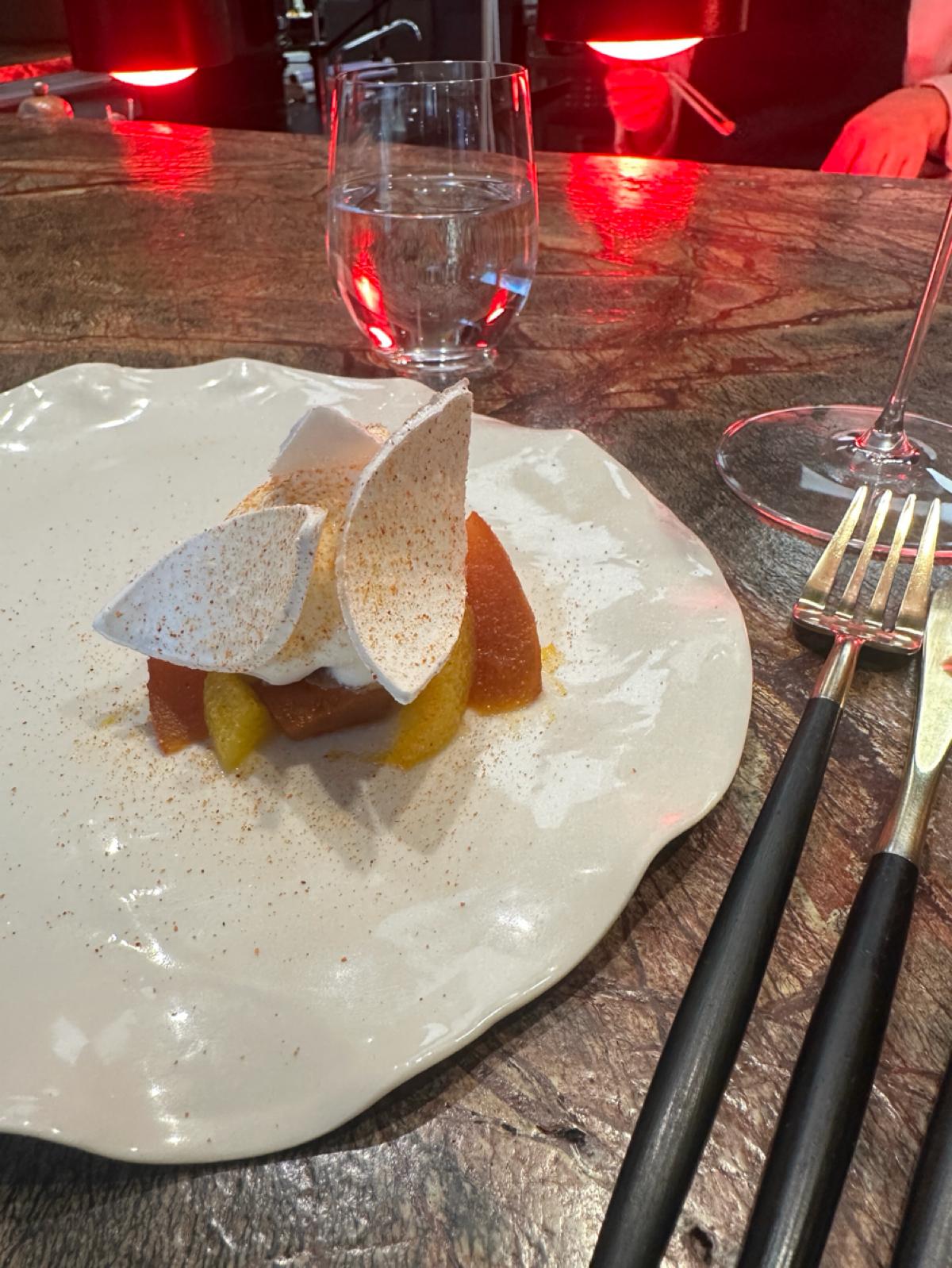 最後的甜點非常特別,是用糖醃漬過的南瓜🎃還有柑橘🍊再用一些糖做裝飾呈現的甜點,不得不說我超愛這道甜點,但也可能是我個人對南瓜的偏愛~我喜歡這種不會太甜,可以清新味蕾的結束!