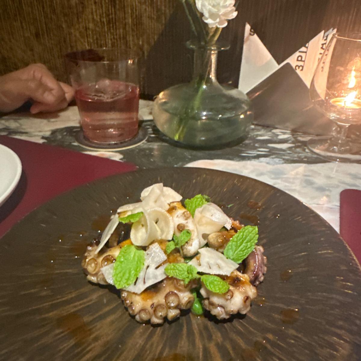 烤章魚可以烤到這麼嫩這麼甜..這家廚師真的是有下過功夫在這些料理上面!章魚烤的香香的配上主廚弄出來的豌豆泥..配在一起更能感受到章魚的鮮味 帶出了原本章魚會有的海味和鹹味!
