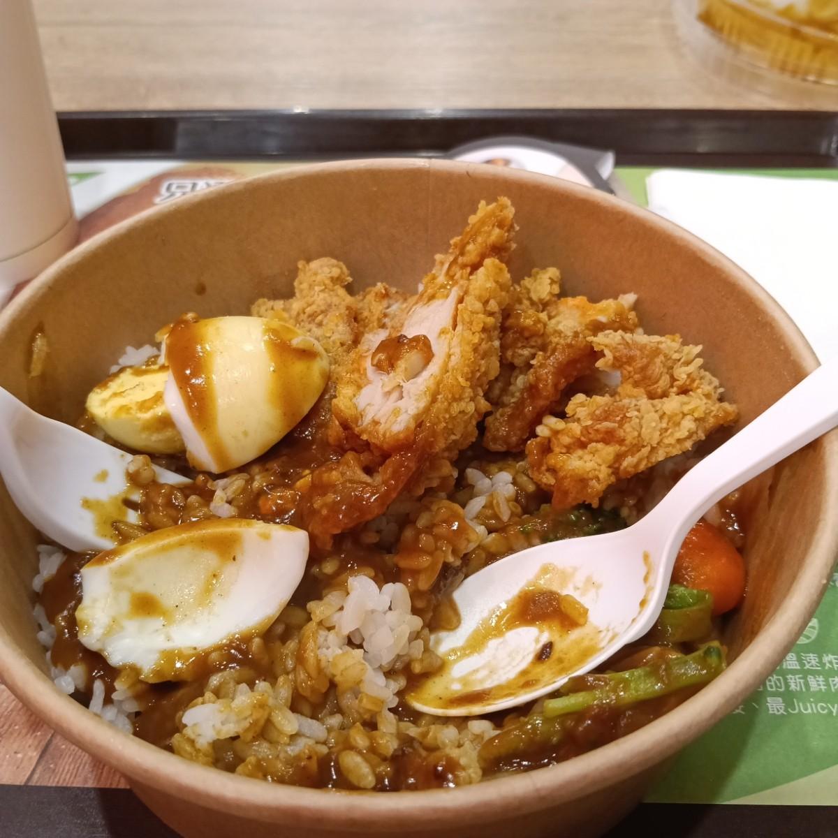 除了漢堡、炸雞、薯條、雞塊之外,竟然意外發現到有期限限定的咖喱搭配炸雞丼飯套餐,決定我必須要點這類不一樣的美食
