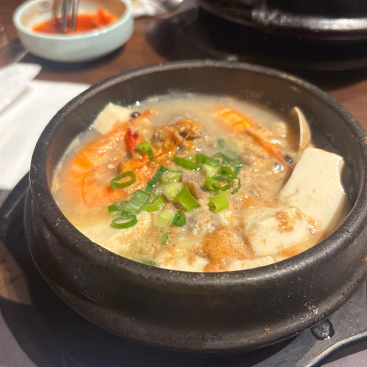 湯頭鮮美濃郁,融合了海鮮的鮮甜與肉類的香氣,每一口都滿載豐富的滋味。豆腐的口感特別柔嫩,幾乎入口即化,搭配附上的紫米鍋巴飯,湯汁滲入飯中,增添一層淡淡的糯香,讓人不禁一口接一口,完全停不下來。