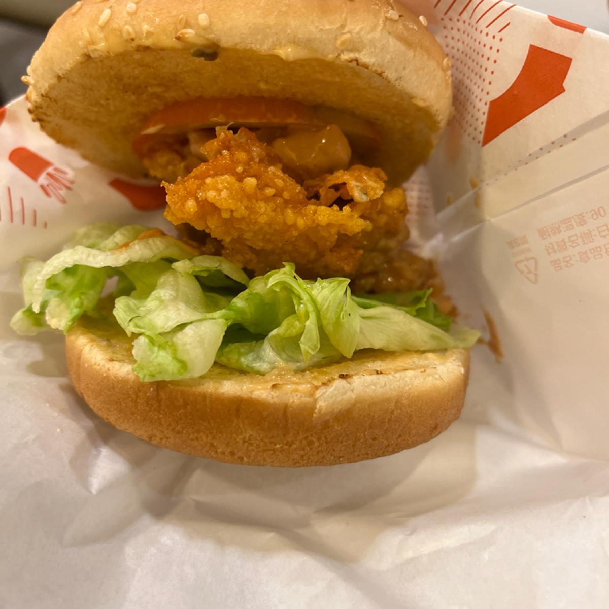 花生熔岩醬炸雞漢堡,裡面的雞肉偏小塊,漢堡整體的感覺有點小。雖然味道還不錯。如果只點這個應該是吃不飽。