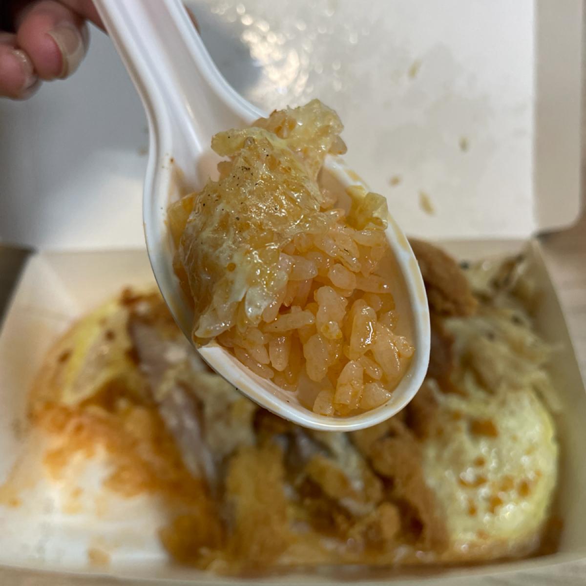 蛋包飯的蛋皮超級薄,吃不太出蛋香;裡面就是包著茄汁飯,味道也很淡,沒有肉絲等配料,所以香氣也沒有炒出來,我另外又加了很多番茄醬,而且飯是常溫的,感覺像是事先炒好一大鍋,這個蛋包飯本體的味道我覺得不過關