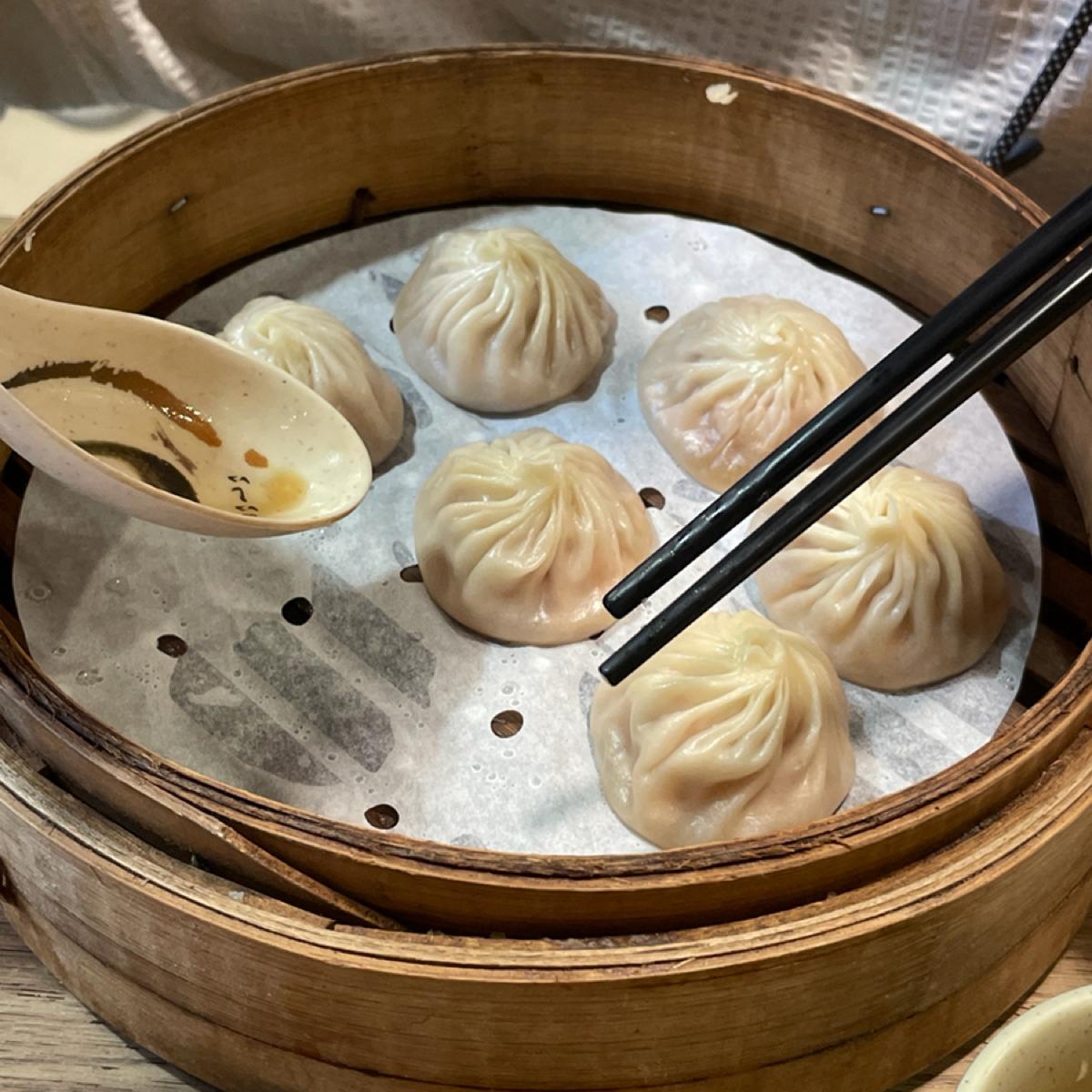 之前有外帶經驗,小籠包跟蒸餃類必點,排骨蛋炒飯不是很滿意,排骨很乾炒飯也不好吃。 這次內用假日下午一點多到達,兩個人等候時間超過半小時,建議若沒有離很遠可以外帶。 小籠包依舊好吃,皮不會過厚或是有發酵過多的蓬鬆感,也沒有個人不愛台式帶甜味的感覺,加醋和醬油非常酸鹹夠味。 很推菜肉蒸餃,覺得是難得好吃的菜肉蒸餃,菜肉比例剛好,不會有過多的菜味,蒸餃大小適中,吃起來非常滿足。 蛋花湯的部分就是可以想像的味道中規中矩。