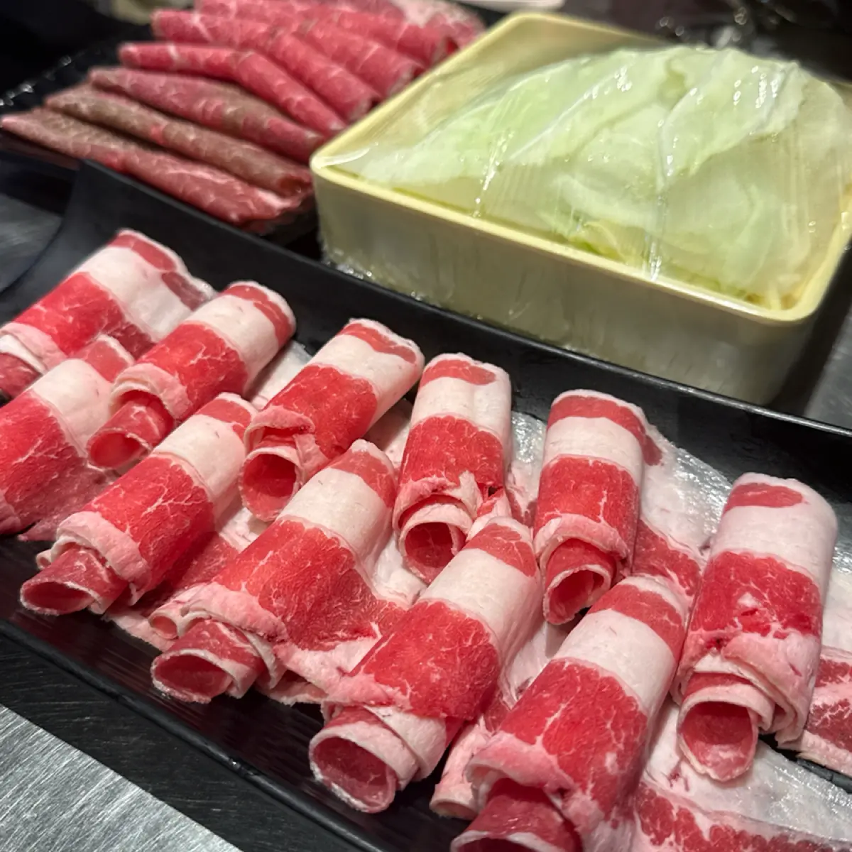 雞肉的肉質細嫩、沒有冷凍雞常見的纖維感與水味,吸飽湯頭後鮮香度提升得更明顯。牛肉、豬肉的品質也在水準之上,油脂均勻、無腥味,輕涮兩秒即可入口~