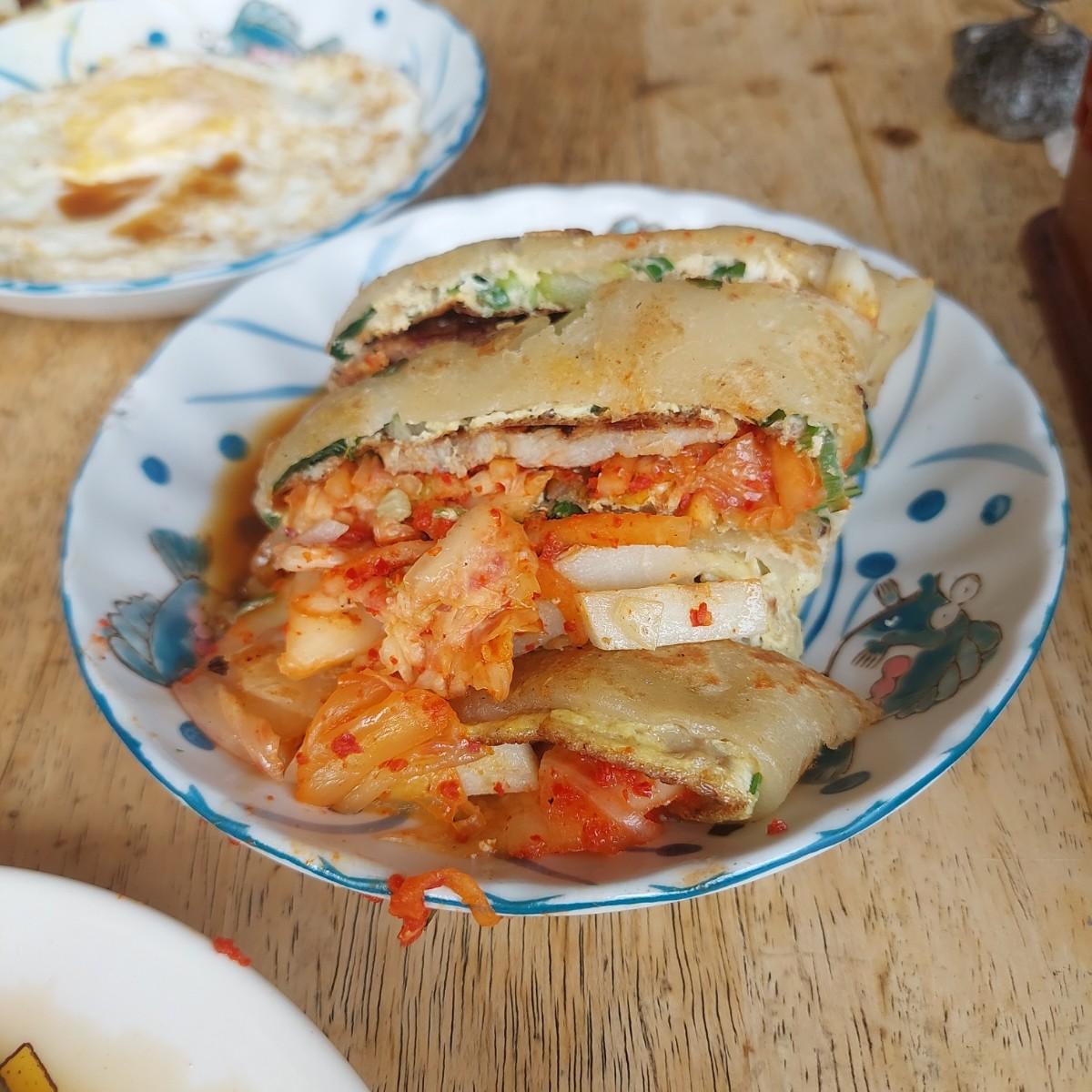 泡菜肉片蛋餅: