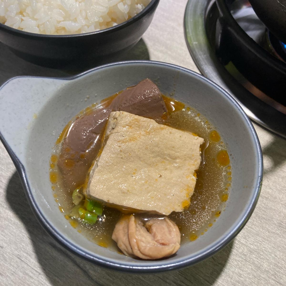這次點的事招牌麻辣鍋(小辣) 辣度剛好、豆腐又嫩又入味,鴨血也很不錯很嫩滑,大腸也還不錯