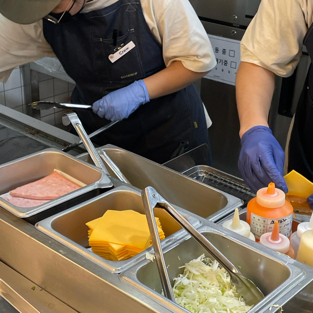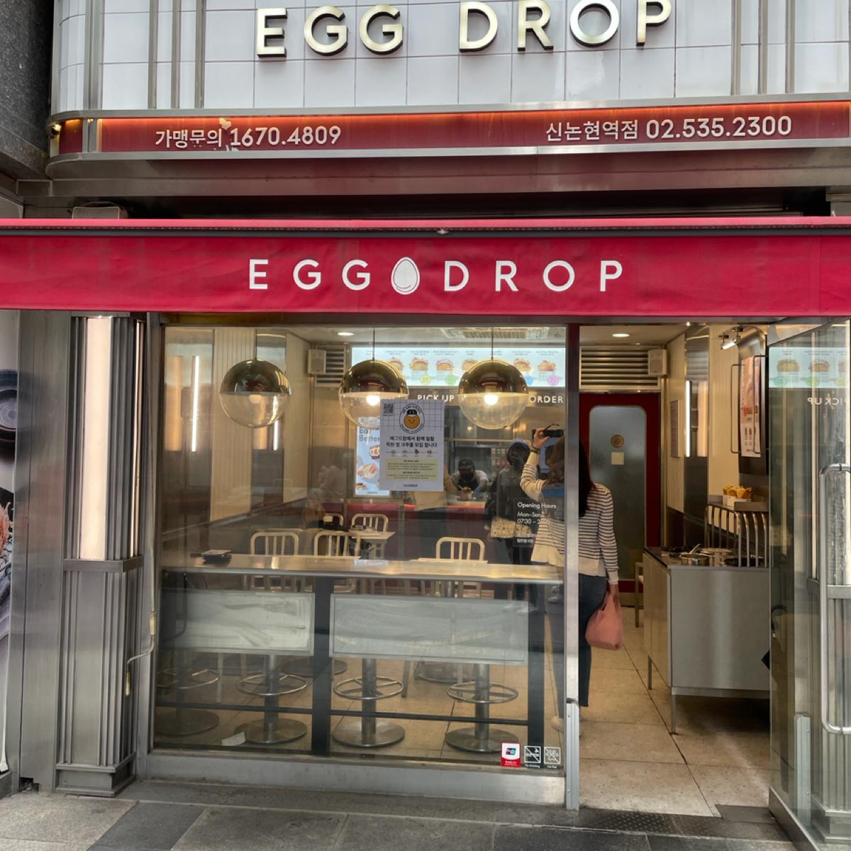 首爾到處都有的eggdrop (註:100%比issac 好吃唷) 這個分店在Google map 上查不到,韓國還是要用naver map 比較完整些~ 總之我點錯了,來eggdrop就是想吃鬆軟的炒蛋卻不小心點到唯一是荷包蛋的口味 ham cheese?! 吐司有加價變成抹大蒜醬 整體還是蠻好吃,還有配蜂蜜芥末之類的醬,但沒有好好坐下來內用、沒吃到鬆軟的蛋有點遺憾🥲