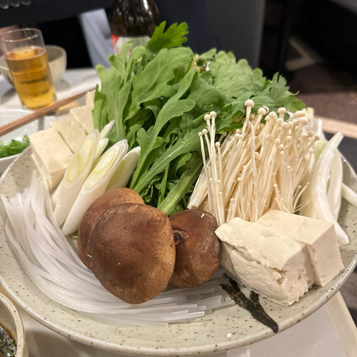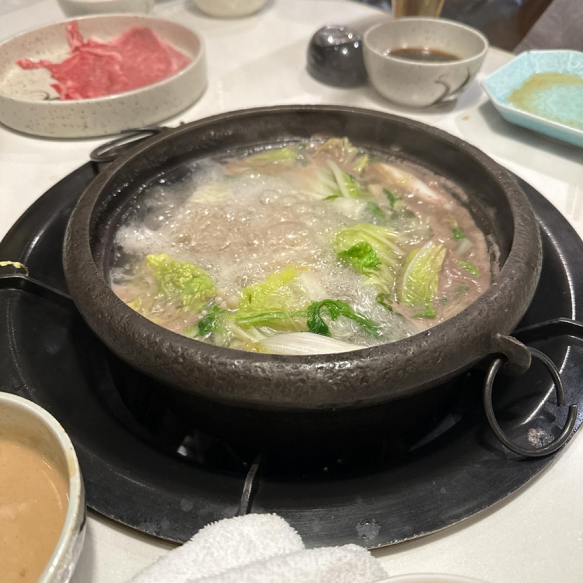 今天我們選的是唰唰鍋.因為是廠商點菜.只知道來的是和牛.但油酯不會太多.吃起來比平常吃的和牛還耐吃.比較不會吃沒幾塊就膩了.整體來說肉質鮮嫩.也是入口即化.很好吃.尤其沾他提供的兩個醬料.一個是胡麻醬.一個應該是特製的醬.有點柚子味.但又不是之前吃過的柚子醬油.加入蔥花跟紅蘿蔔泥.味道真的不錯.