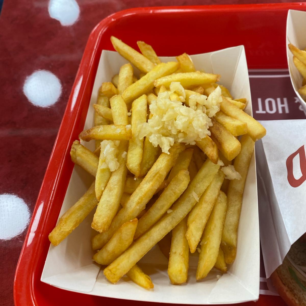 <關於餐點🥣> 整體餐點來說偏貴…蒜泥薯條不合格@@ 就只是拿冷凍薯條炸熟然後再加上一些蒜泥口感沒什麼驚訝的,但他們有提供東泉辣椒醬!漢堡的部分是主角,麵包鬆軟雞肉超嫩又有肉汁直接讓我把前面的薯條的壞心情給狠狠的拋出去了。