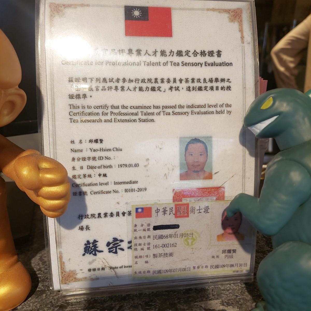 老闆為了開店花了三年,考取了中級茶葉感官品評師的證照。