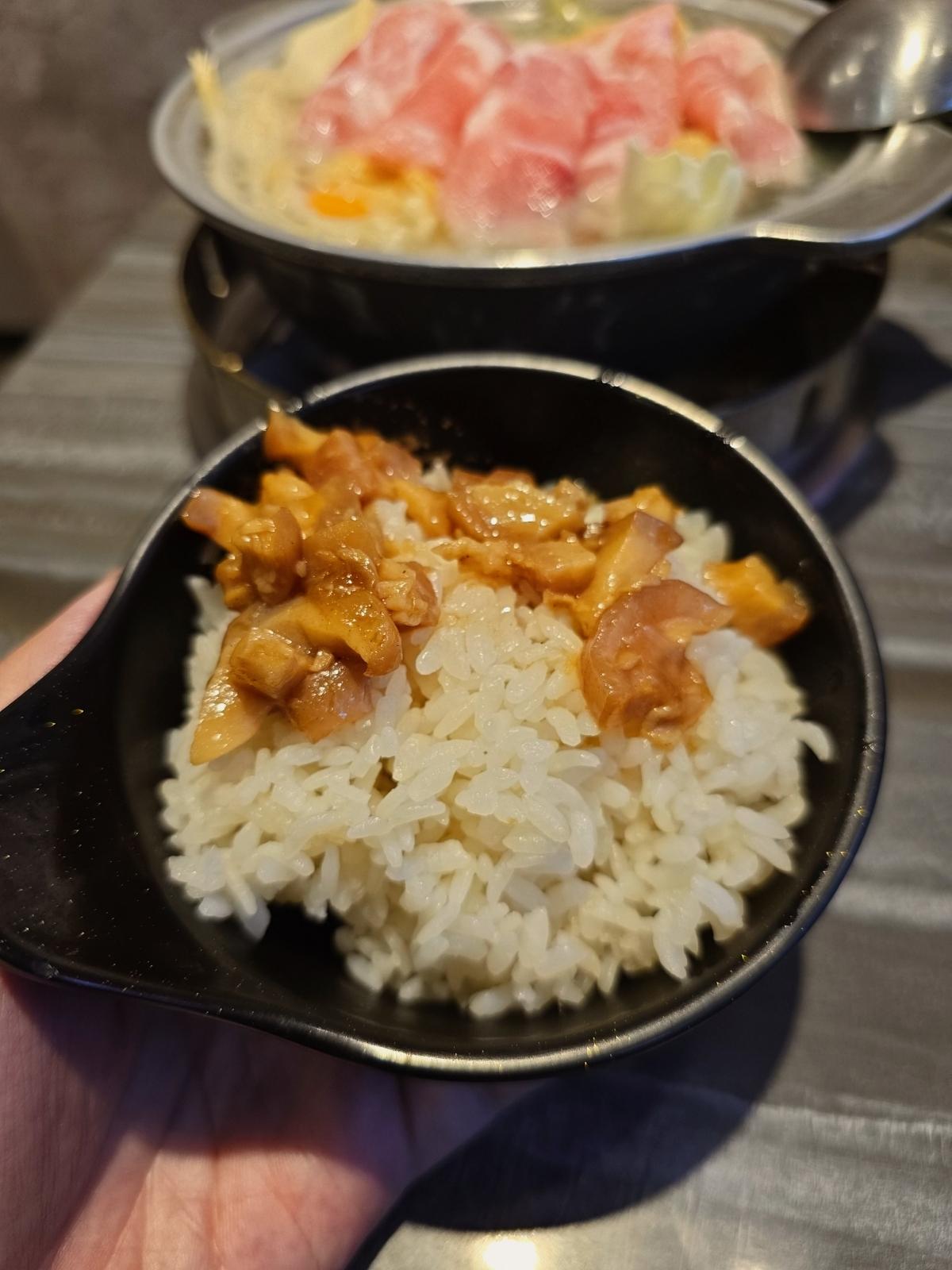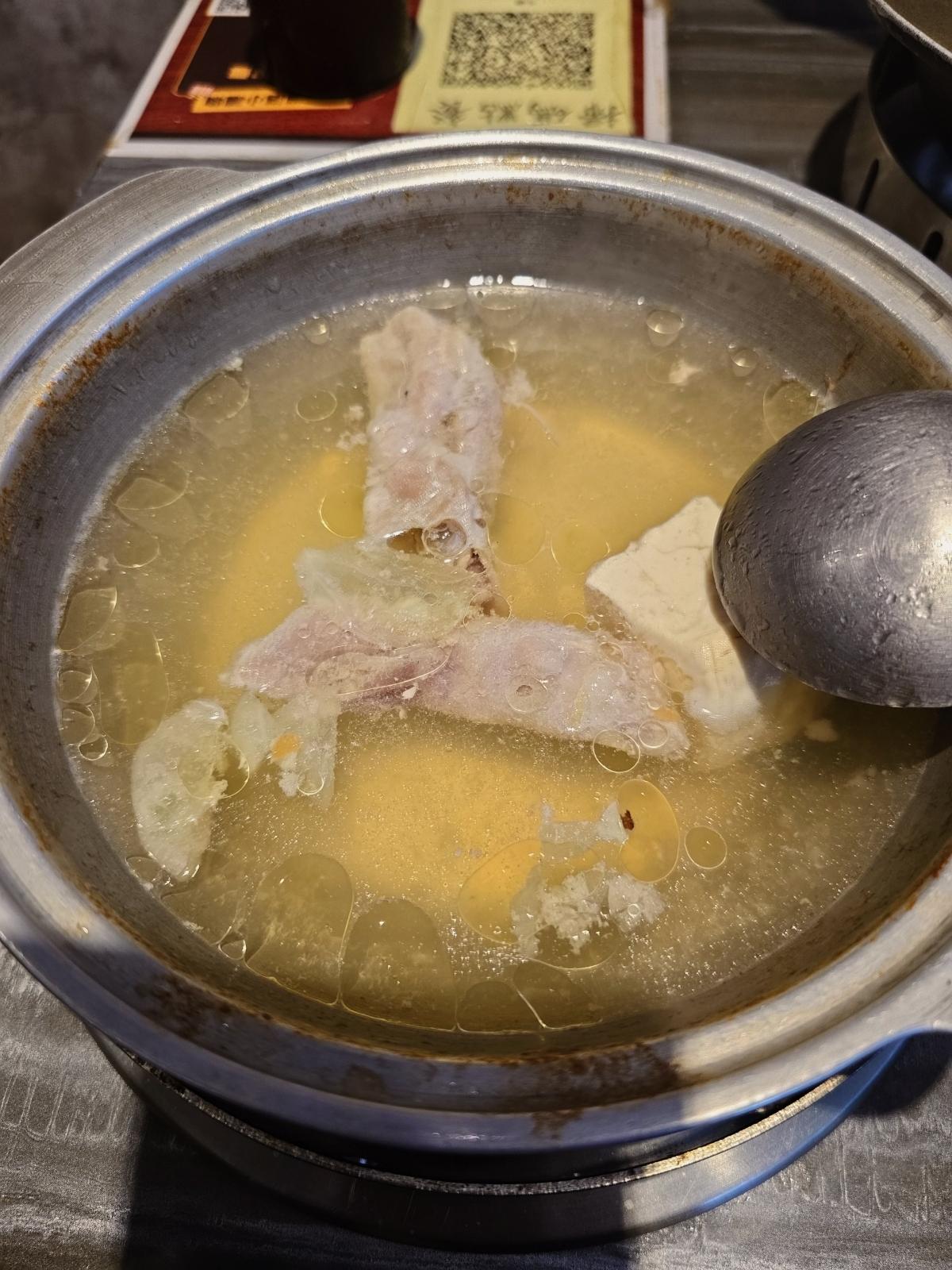 是店內的高價鍋物,額外贈送了雞蛋與干貝,湯頭酸辣適中,豆腐滑嫩,整鍋表現順口不刺激。