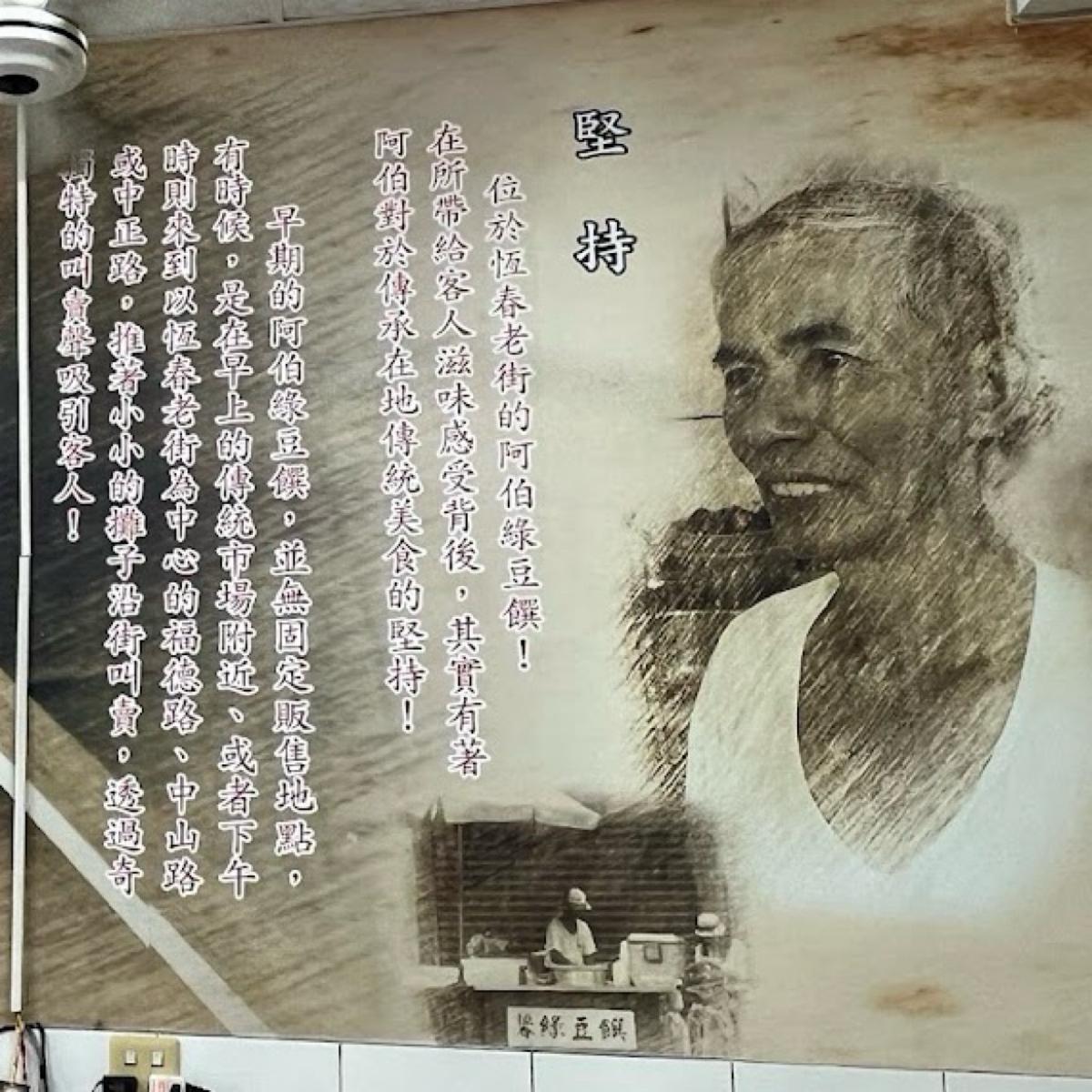 這家店的環境相當古早味,店內牆上還保留著許多當年阿伯推著小餐車販售的照片,給人一種懷舊的感覺。來恆春不妨來這裡品嚐一下在地特色的消暑甜品,尤其是當天氣炎熱的時候,一碗綠豆饌冰真的是既解渴又有飽足感 。