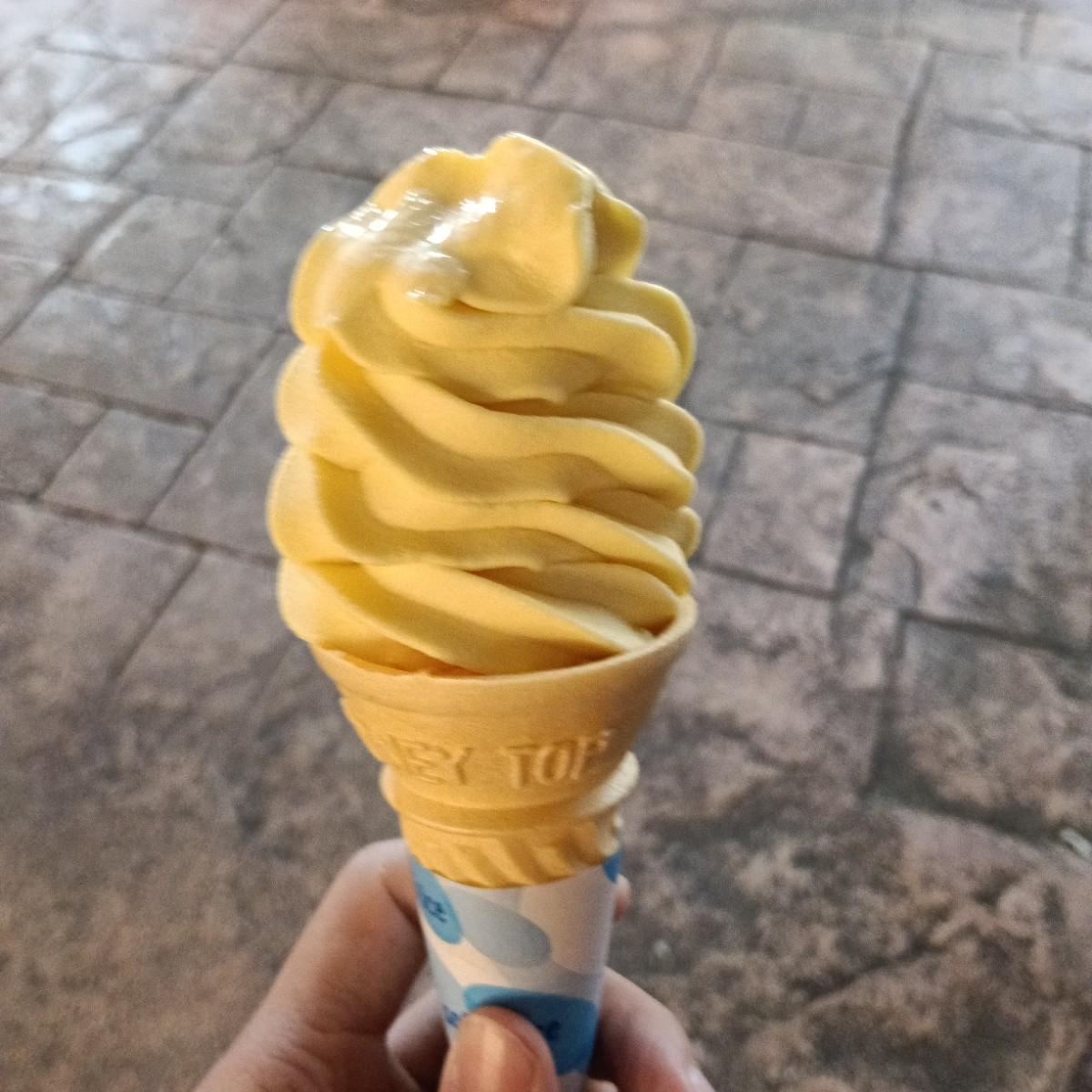 雖然晚上在美國村的天氣很冷,但遇到冰淇淋仍然擋不住我想要吃冰淇淋的慾望,很快選擇芒果口味的冰淇淋,看到老闆很專注的模樣,用機器將冰淇淋的形狀完美呈現擺在我的眼前,親自拿給我,我心動很感動,於是馬上品嚐這樣的口感