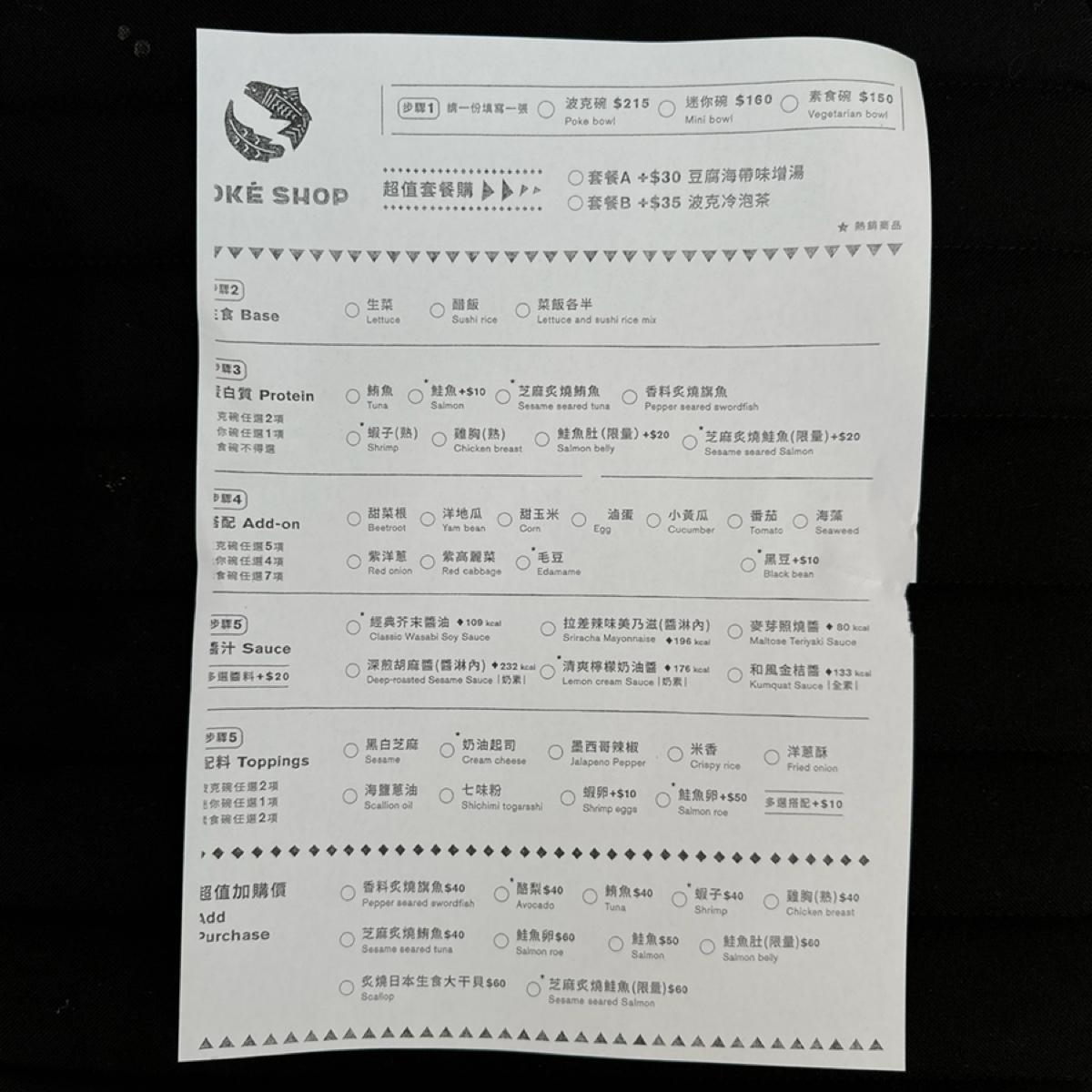 點了波克碗,基本起跳價 $215 又因為有選鮭魚類,最終價格來到 $225 和過往相比漲幅算不少,需要另外加價的料也變多了,只要想吃鮭魚類通通都要加價處理。