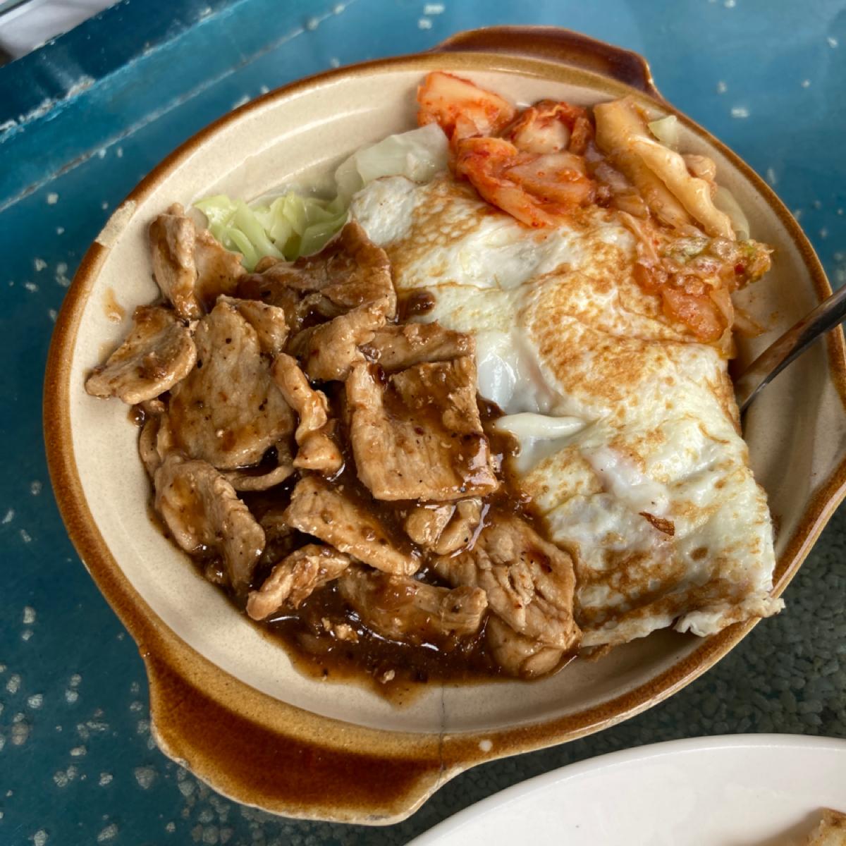 特色是飯類都會給一點泡菜當配菜,飯量多、肉量也算多