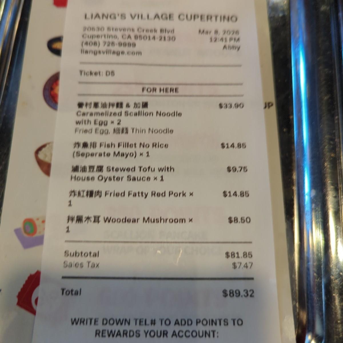 曾去過「梁媽媽家」(Irvine, Milpitas)很多次, 有些必點的菜, 可惜後來(疫情後)想到還要再去時卻發現關了. 這次看到聚餐在 Cupertino, CA 的 Liang's Village, 還在想是否是「梁媽媽」?
