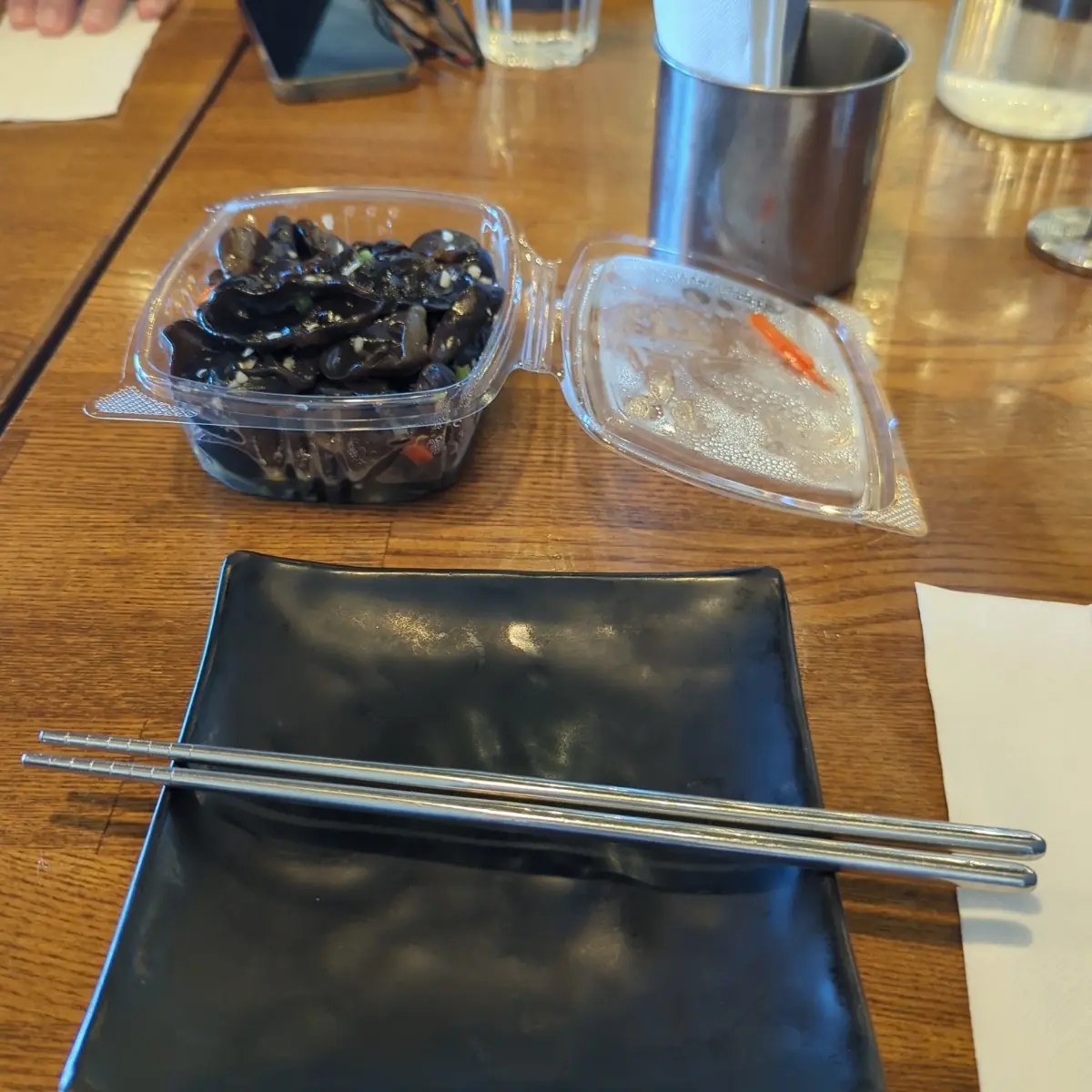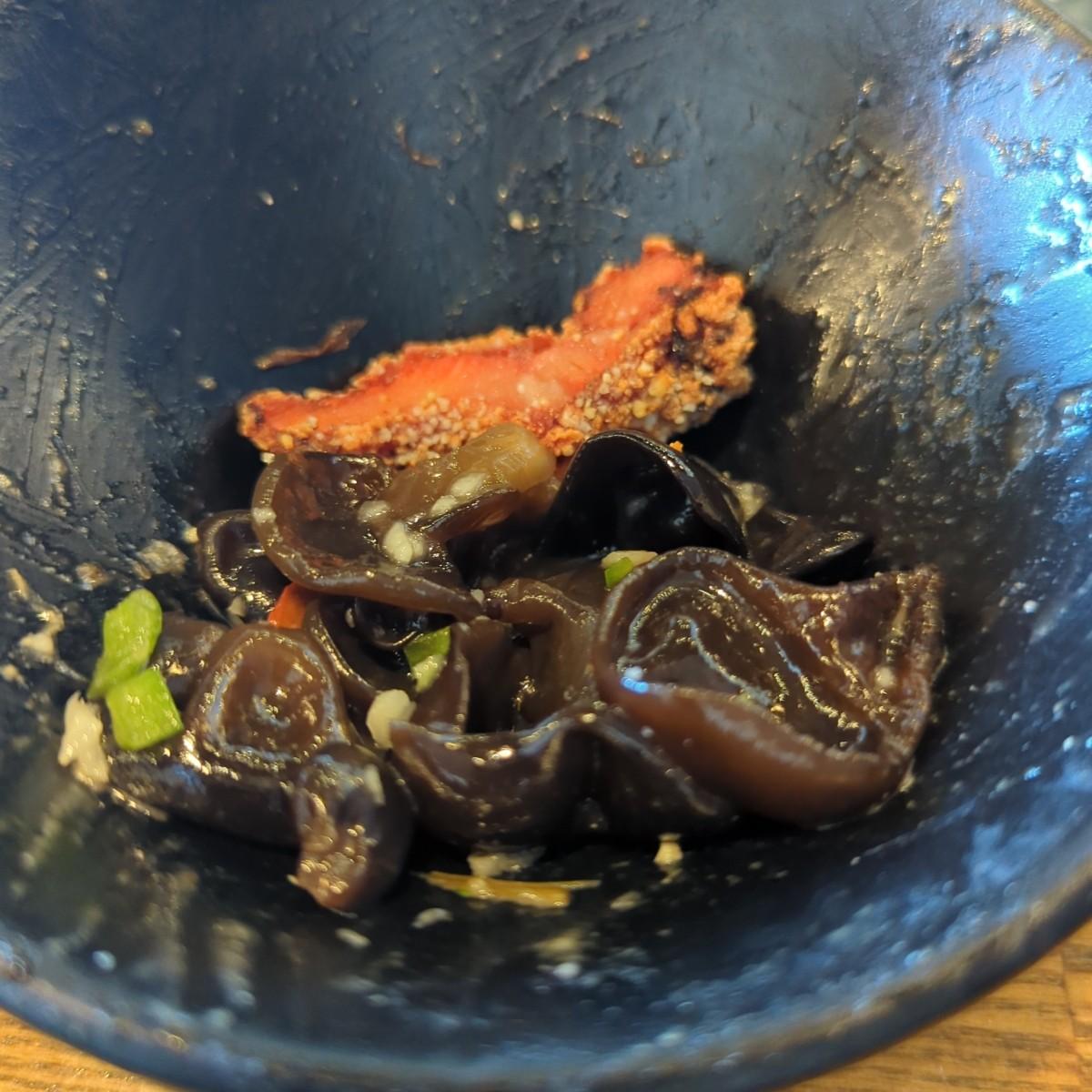 (1)(新)拌黑木耳:已裝成盒可外帶. 鹹酸口味, 還不錯.