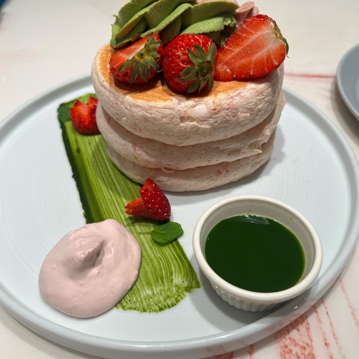 意外地不用排隊,真是太幸運了。舒芙蕾外層煎得微酥,內部輕盈,入口即化。櫻花鬆餅 口感鬆軟,帶點淡淡的櫻花香氣,不會過甜,但相較之下還是比較喜歡原味款。抹茶茶味濃郁,不會過苦。整體來說,甜點和飲品都維持在水準之上,環境也蠻舒適的。