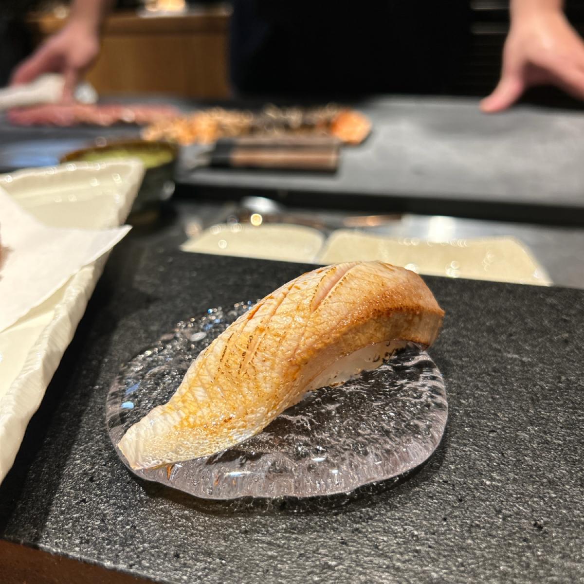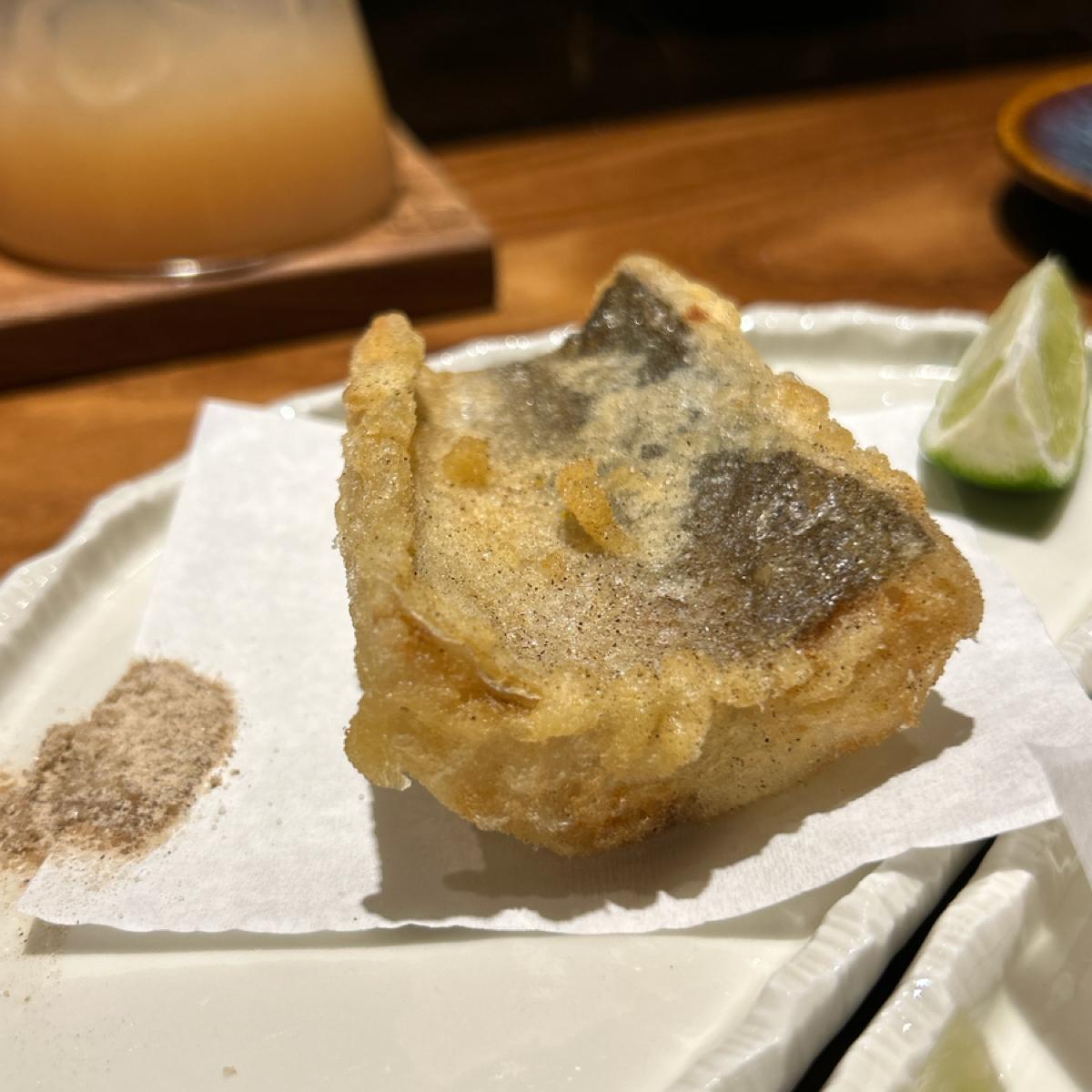 午仔魚的油脂、芥末椒鹽和炸的脆皮在嘴裡融合的感覺很爽欸,吃到後面炸皮也沒有軟軟爛爛的很優秀