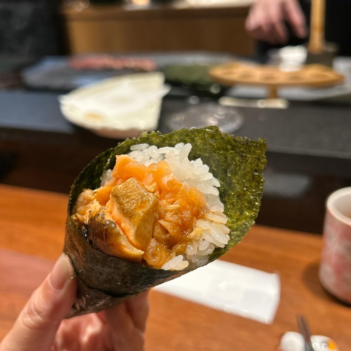 稻燒鮭魚手卷的煙燻香氣也是非常難忘