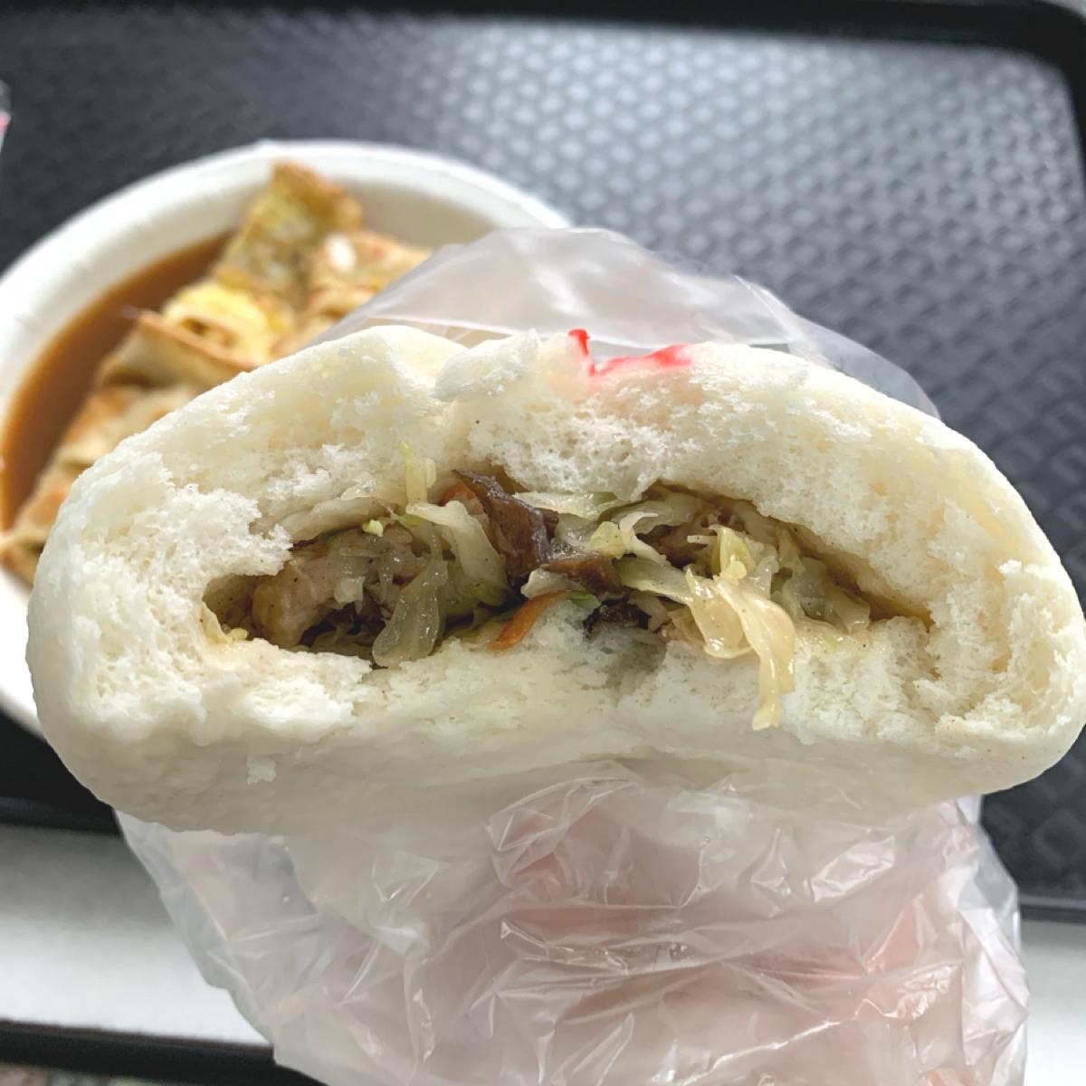菜包是使用高麗菜,口感夠軟,經黑胡椒粉調味足,只是餡料偏少,包子外皮嫌厚。