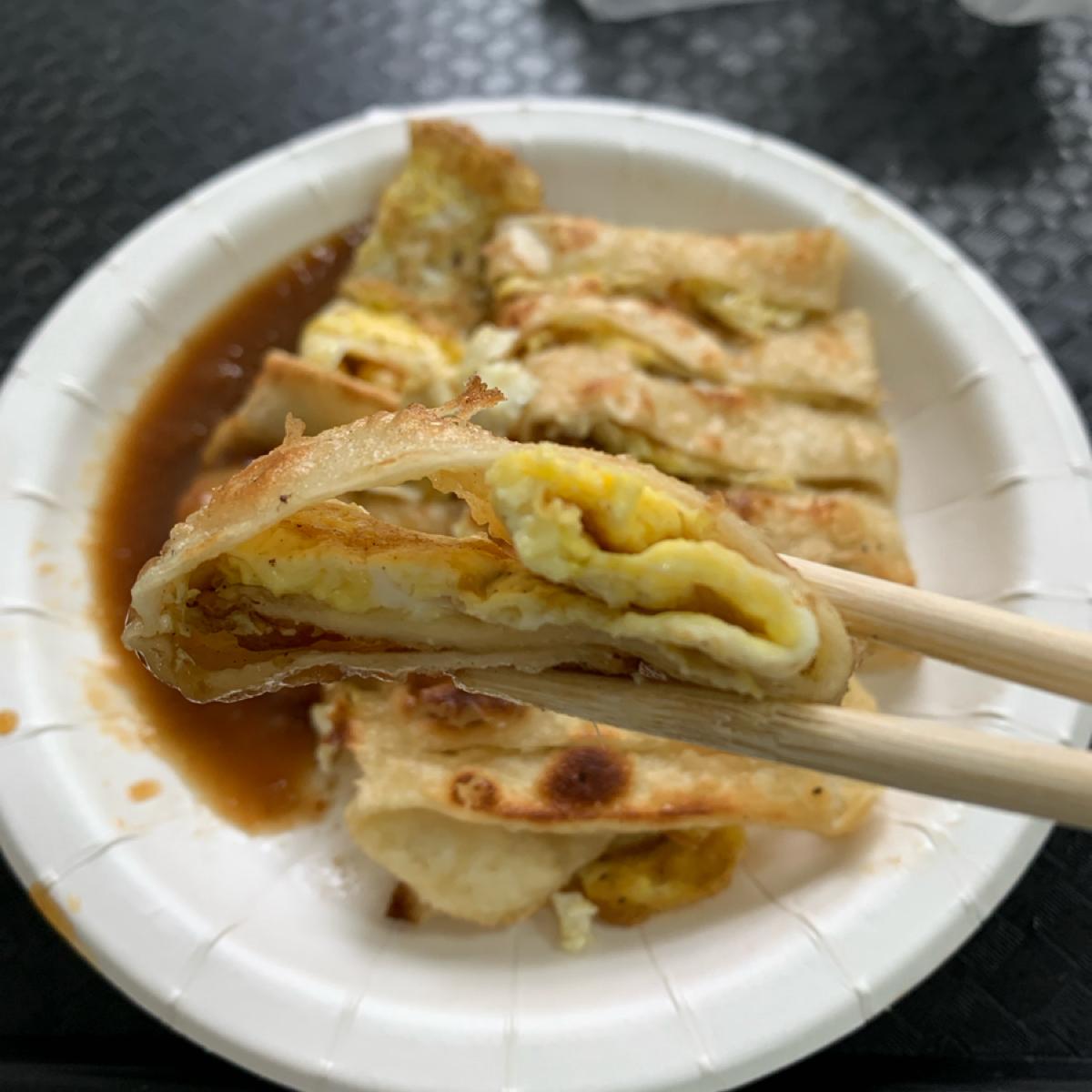 雙蛋蛋餅表現尚可,本以為會是雙蛋厚實蛋餅,實則為一份蛋餅加上一份煎蛋,