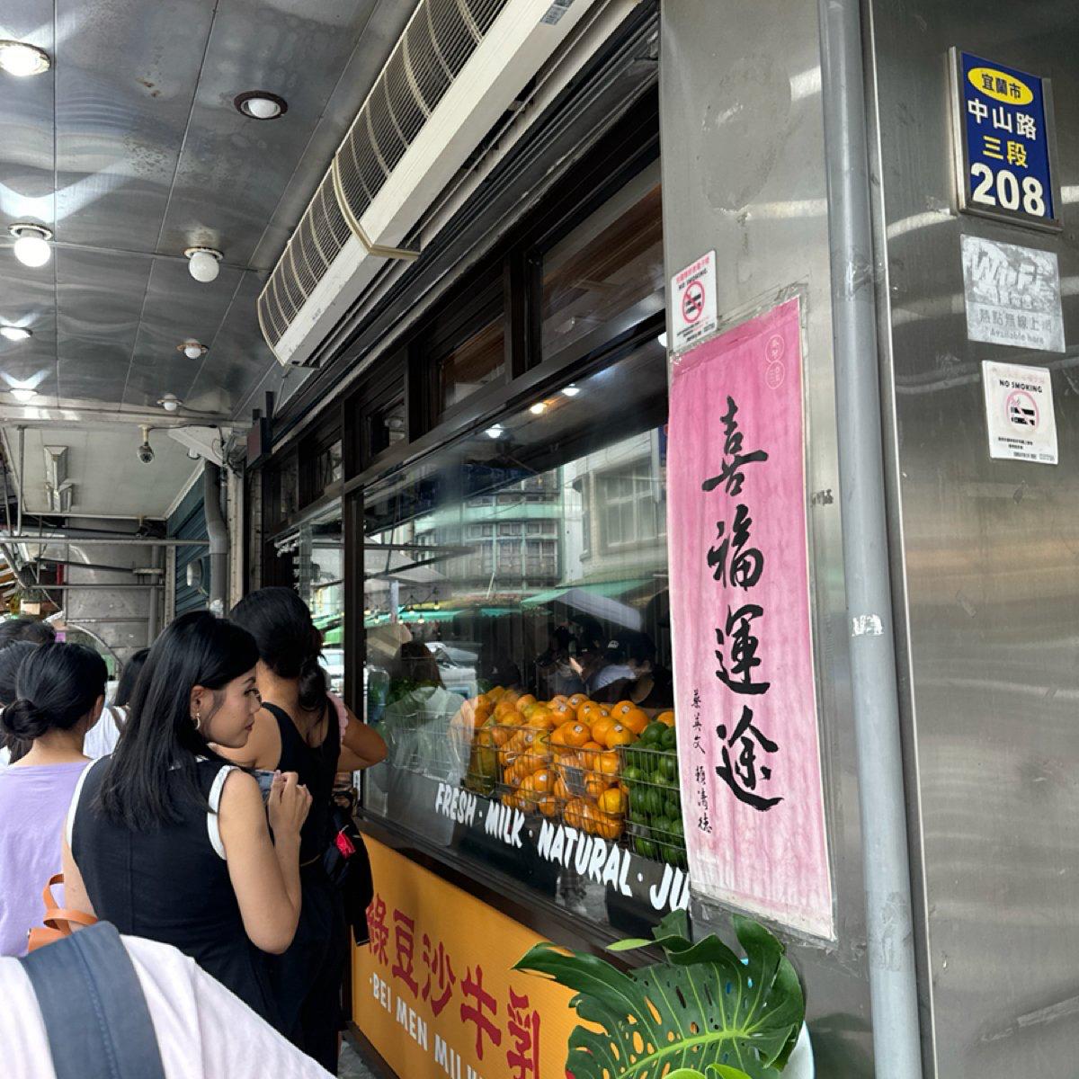 聽說是網路名店 週五下午來也確實要排隊 排了大概10組客人、等約莫10分鐘 飲料大小約莫手搖店中杯 木瓜牛奶喝起來像奶昔感 沒有冰塊 非常好喝 也不會喝到後面就變一堆渣渣 但還是建議提早飲用完畢 是蠻建議來宜蘭可以撥空來買的 配鹹食又特別爽