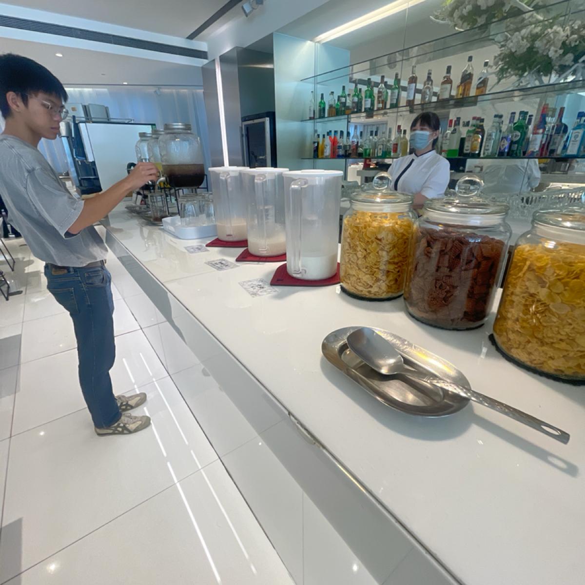 供餐時間,從早上7點到10點,可以坐著慢慢享用他的早餐